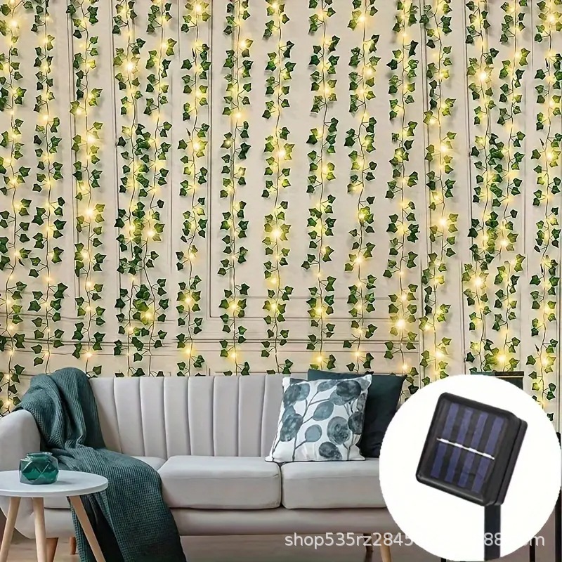 国境を越えた太陽エネルギー常青藤灯LED銅線灯串登山虎クリスマス模造植物緑葉装飾灯