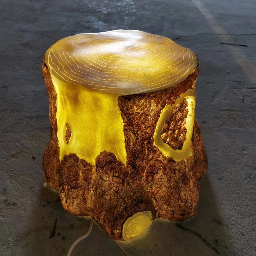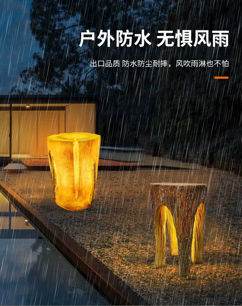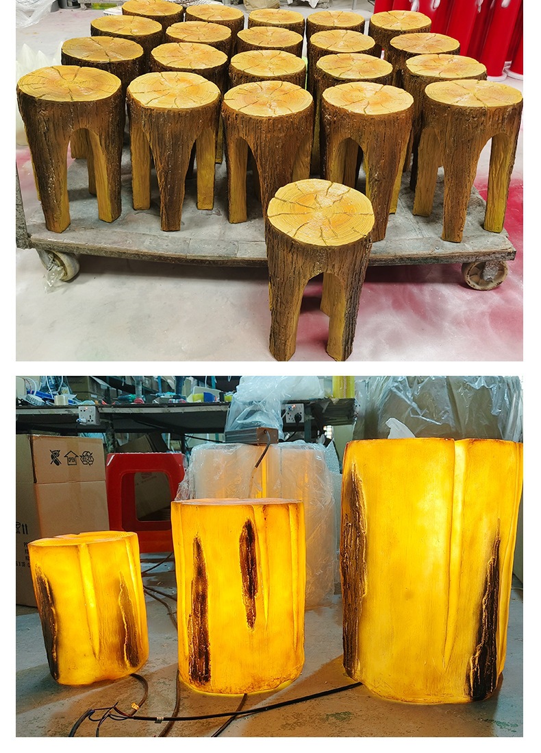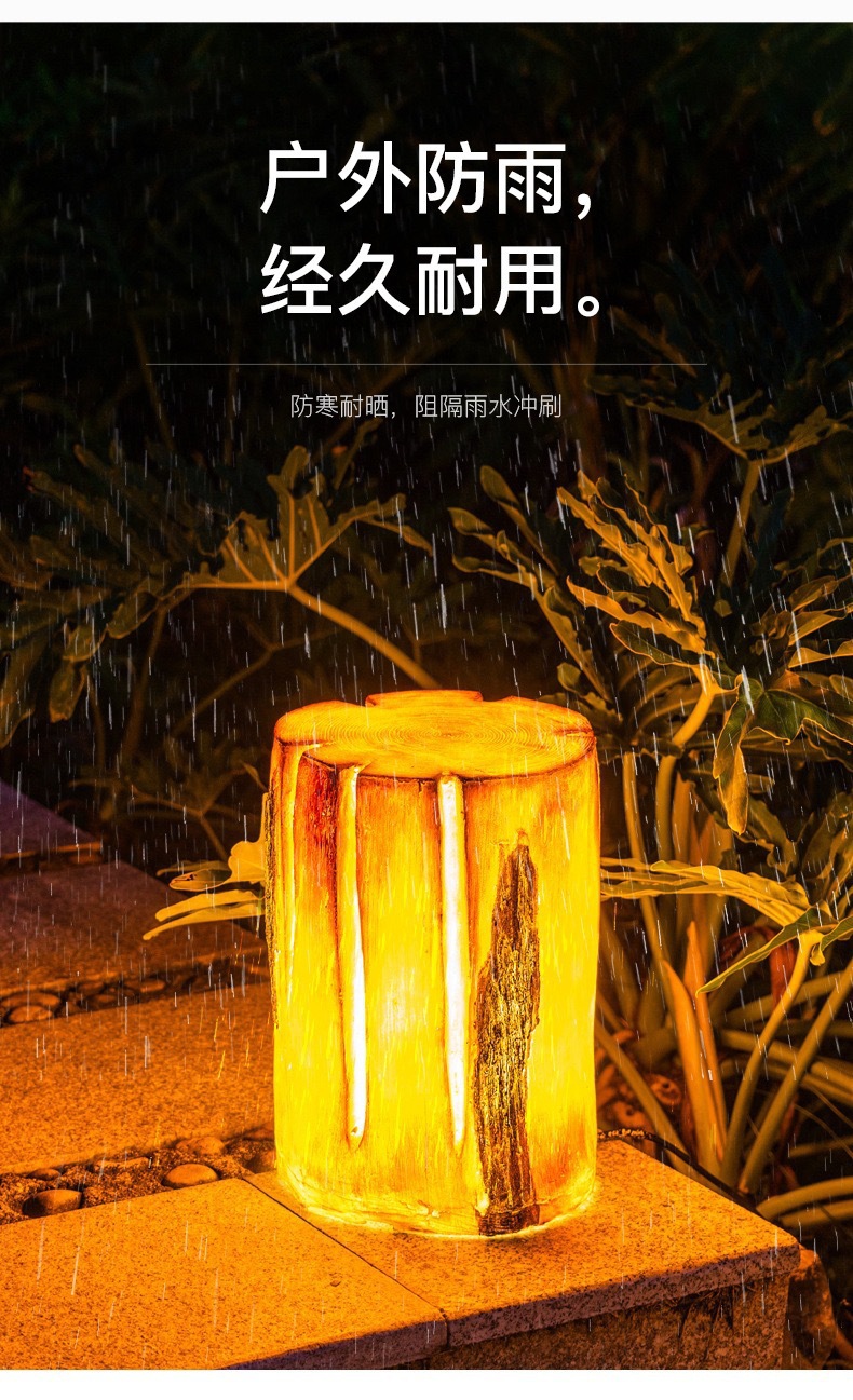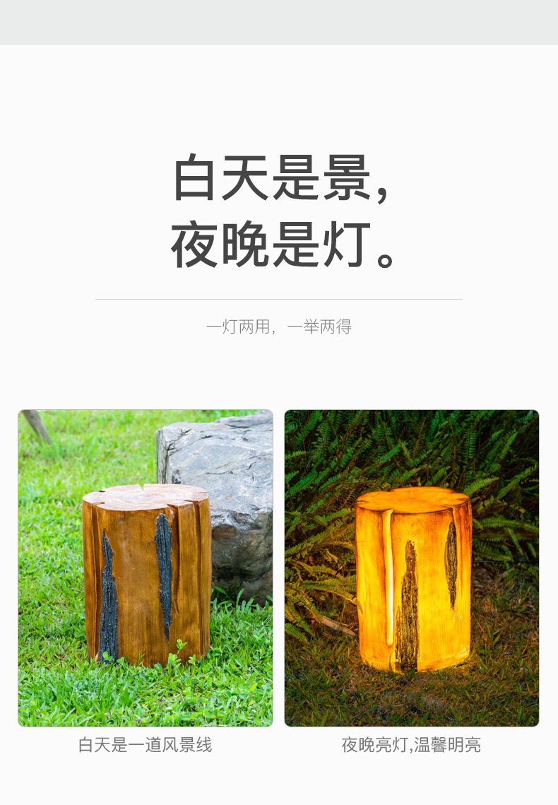 木の切り株ライト LED 木目模擬装飾中庭芝生ライト公園コミュニティガーデン風景ソーラー木の切り株ライト