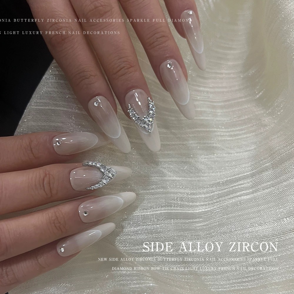 新しいジルコンマニキュアダイヤモンドインターネットセレブフレンチスタイルダイヤモンド完成品爆発蝶ダイヤモンドがちりばめられた立体ネイルデコレーションマニキュア弓ジルコンジュエリーダイヤモンドスーパーフラッシュ立体特殊形状バラ