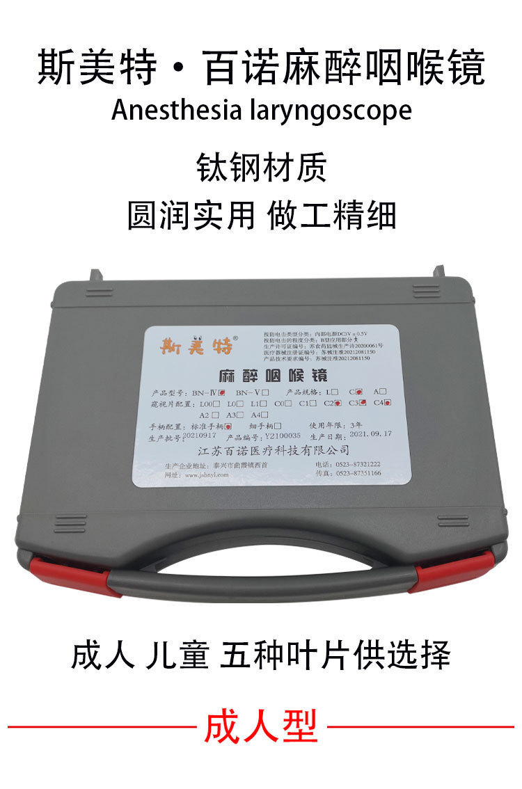 斯美特麻醉咽喉镜(不锈钢)成人型 儿童型 套装