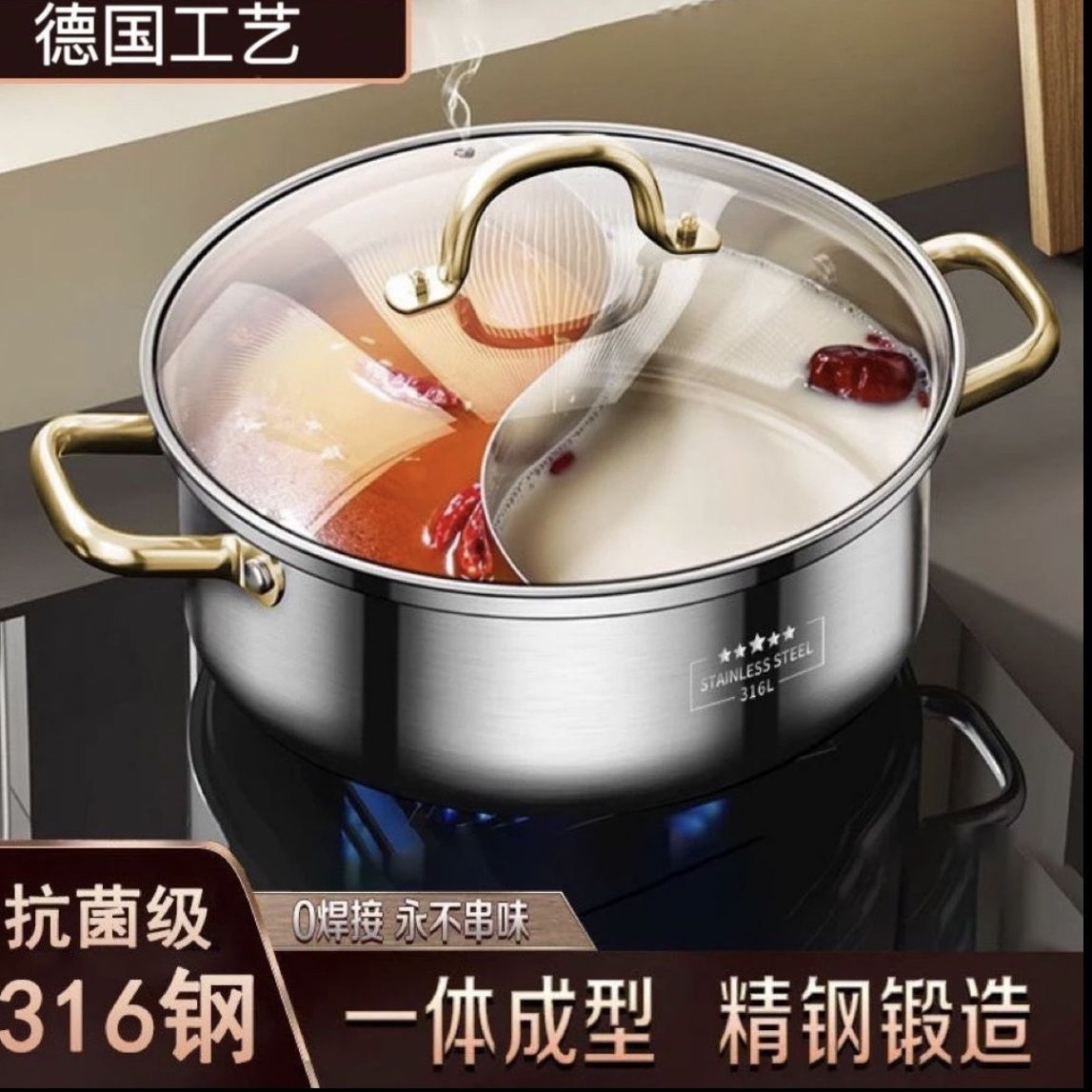 ドイツ316ステンレス特厚蒸し鍋家庭用超大容量鍋高温清湯鍋屋外しゃぶしゃぶ鍋
