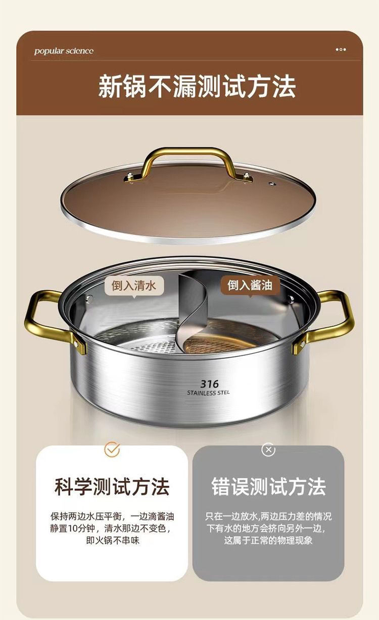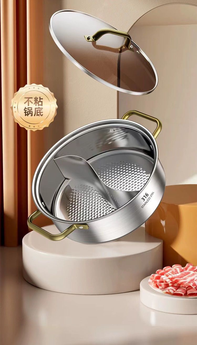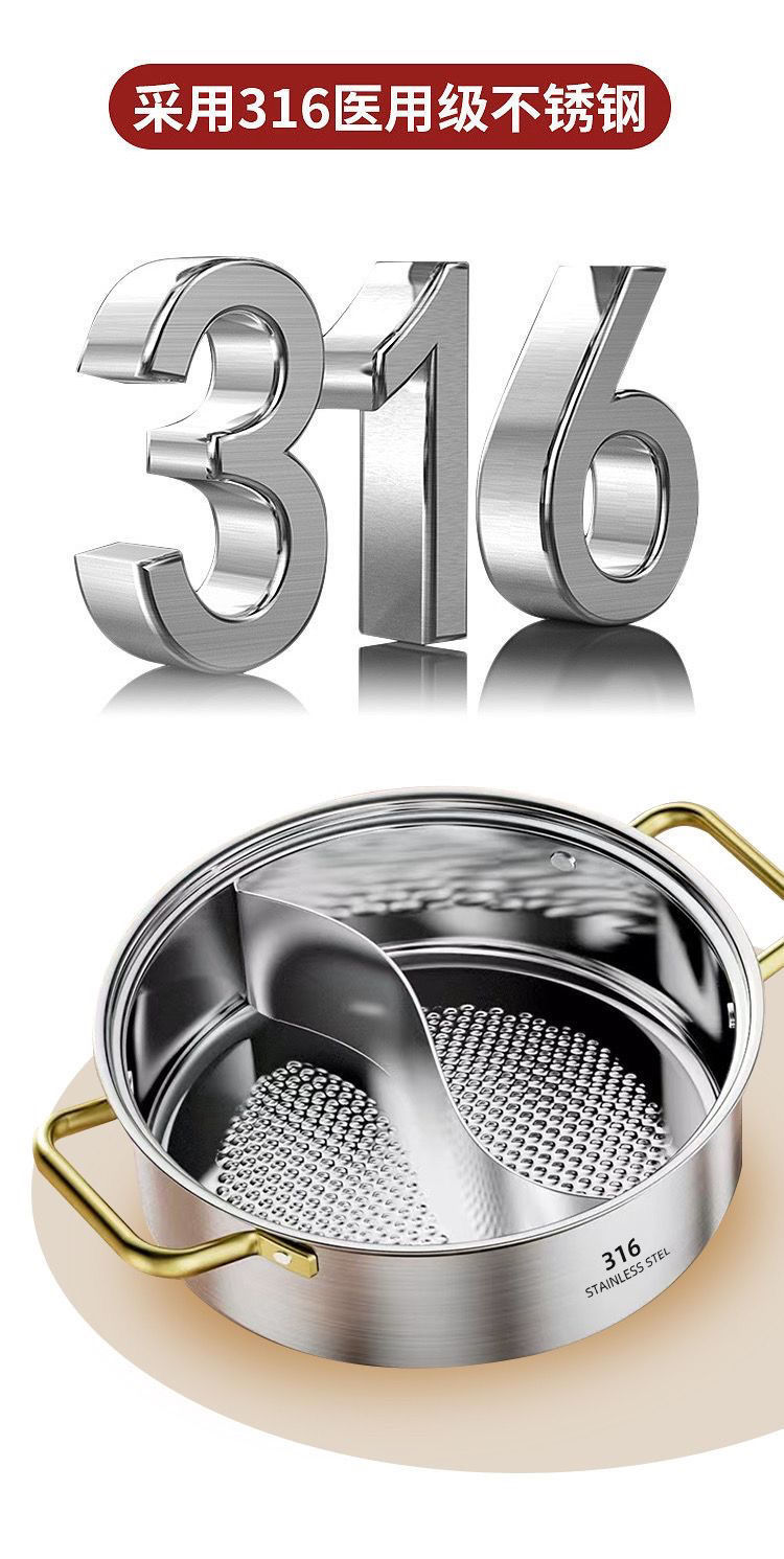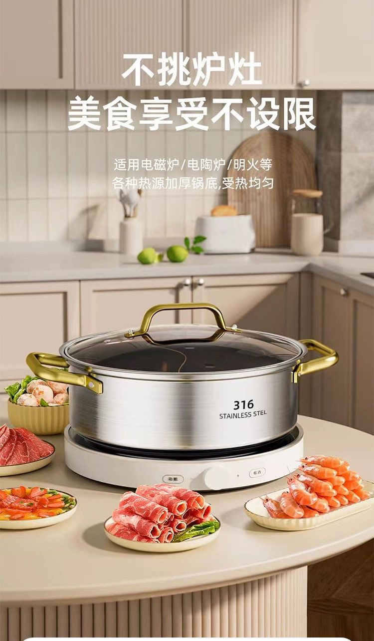 316特厚ステンレス家庭用しゃぶしゃぶ鍋清湯鍋鴨鍋電磁炉ガスコンロ通用鍋