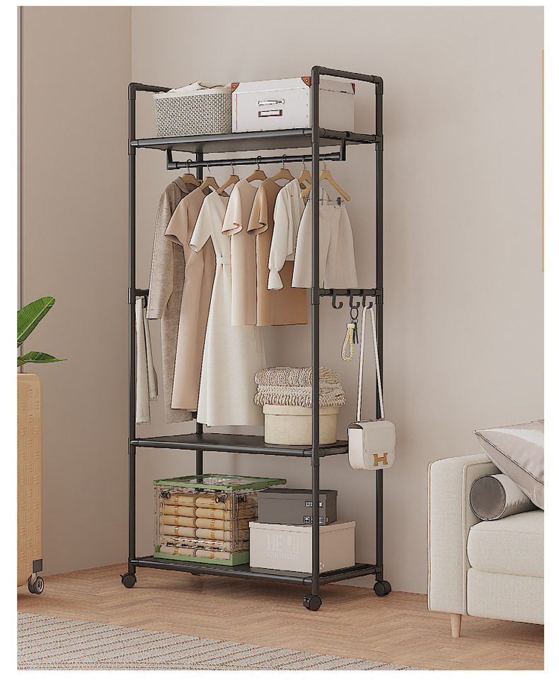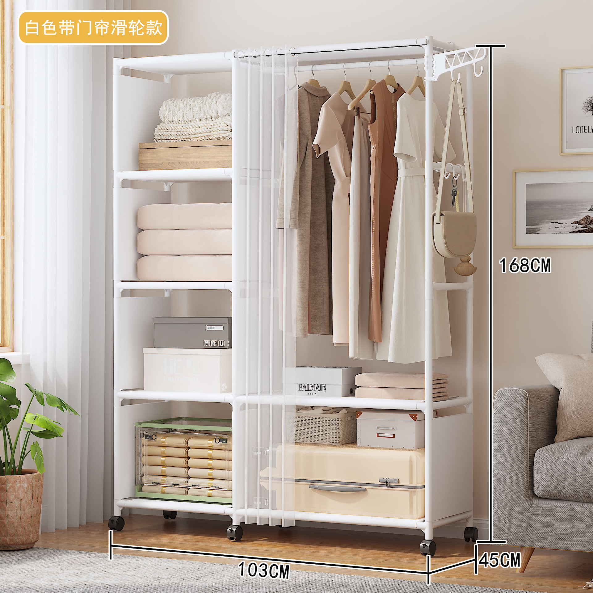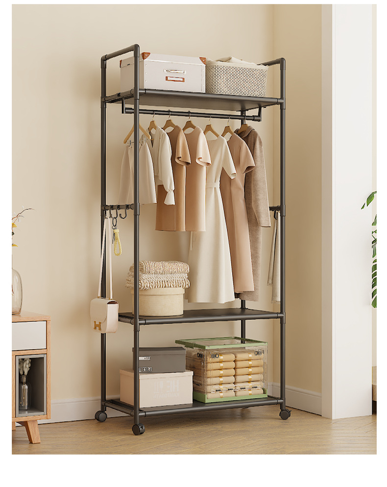 簡易多機能服ラック物置棚家庭用寮床置きハンガー移動式服ラック収納棚