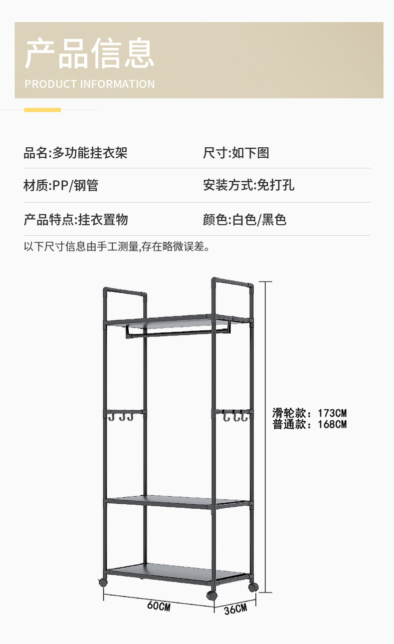简易多功能衣帽架落地双排衣服架挂衣架晾衣架卧室家用加固衣服架