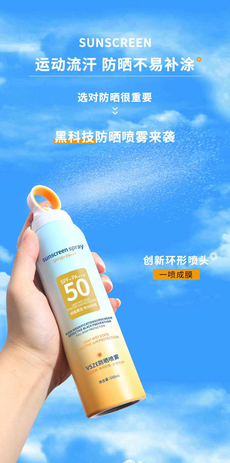 VSZE 小口径日焼け止めスプレー SPF50+ ハイパワー日焼け止め全身さわやか隔離 UV Douyin 人気モデル