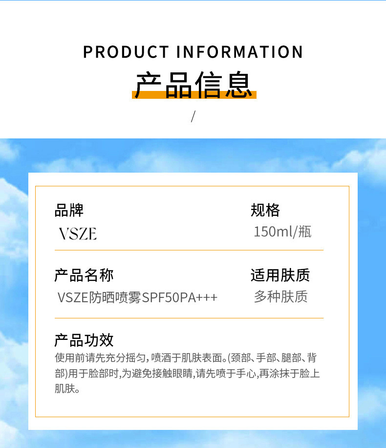 VSZE小絞り日焼け止めスプレーSPF50高倍日焼け止め全身爽やか隔離紫外線震え音起爆