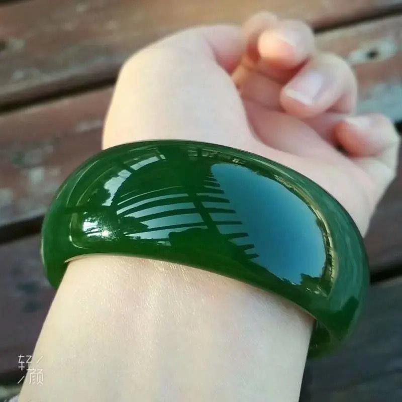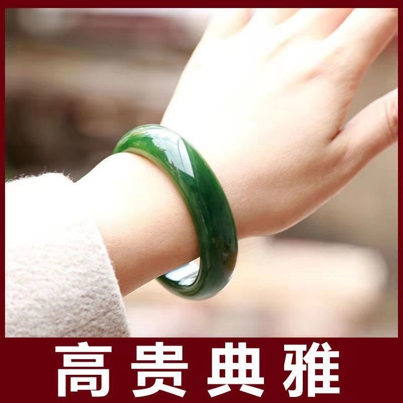 新疆のブレスレットの女性は広くて、ホウレンソウの緑の青々とした玉の碧玉の腕輪の瑪瑙を厚くして、お母さんの彼女にプレゼントします。