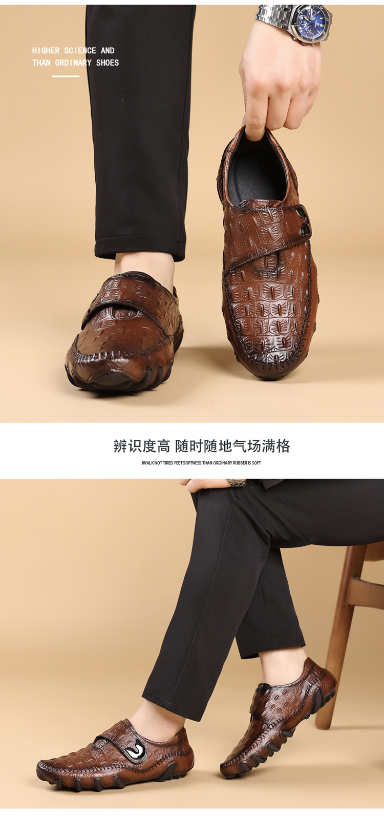 越境革靴 メンズ 本革 2025年秋新作 メンズ 一層牛革 トレンド クロコダイル柄 メンズシューズ 一件代発