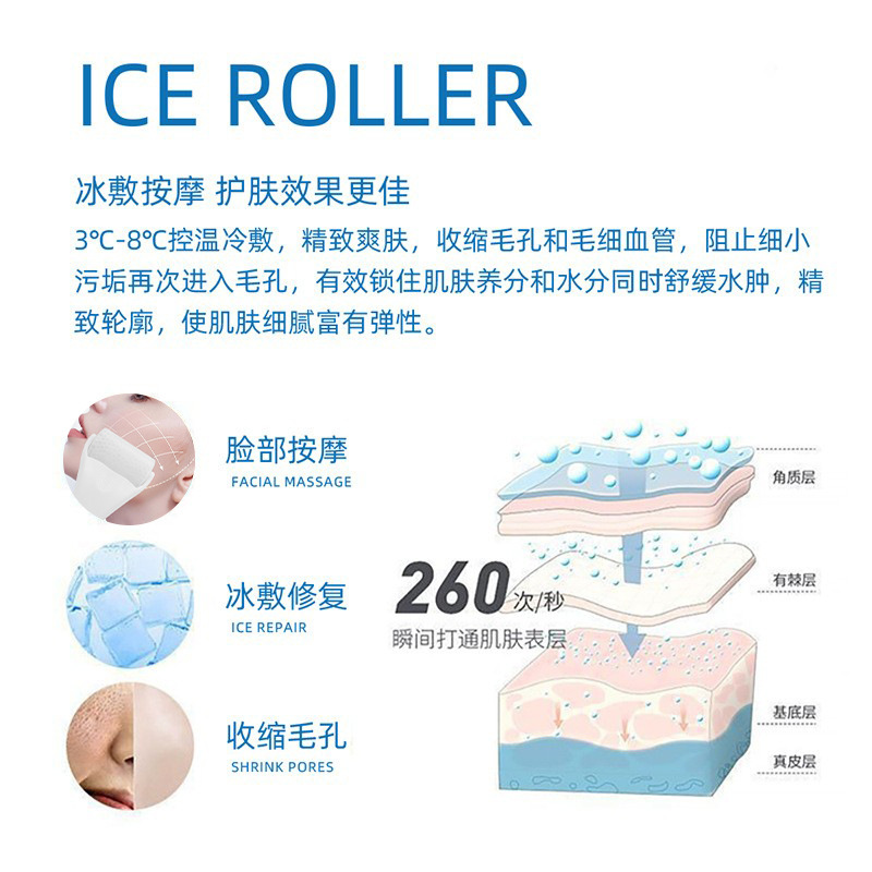 跨境直供Ice Rolle冰滚轮面部冰敷按摩物理降温美容护理冰肌滚轮