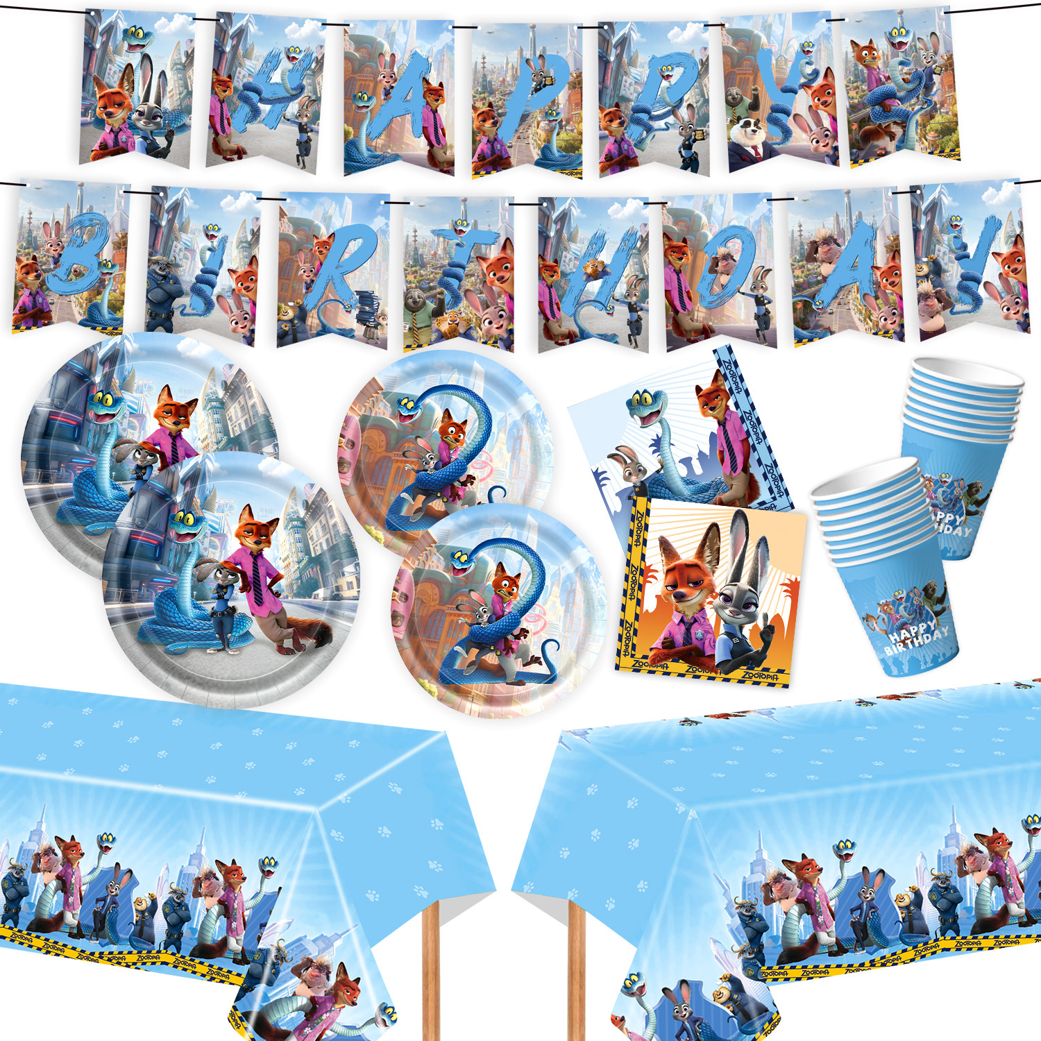 电影疯狂动物城2主题生日派对装饰拉旗纸盘纸杯纸巾桌布插排用品