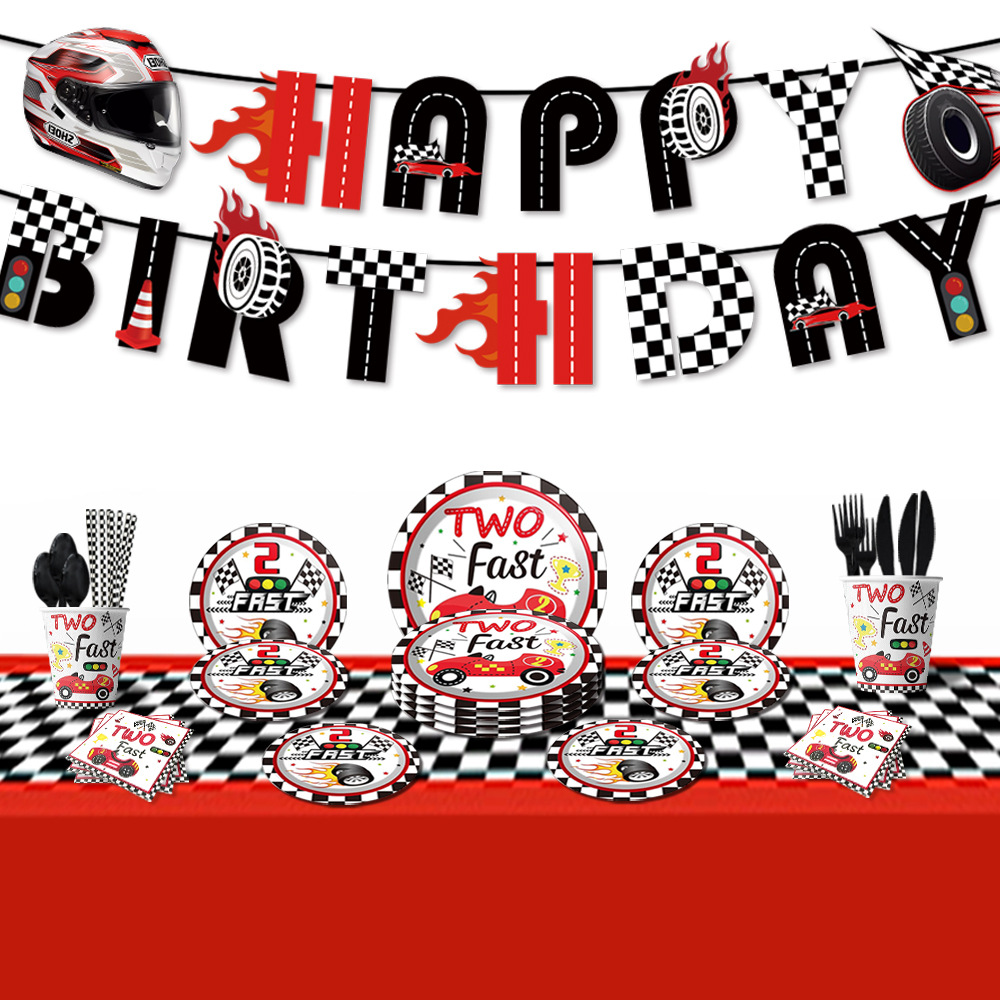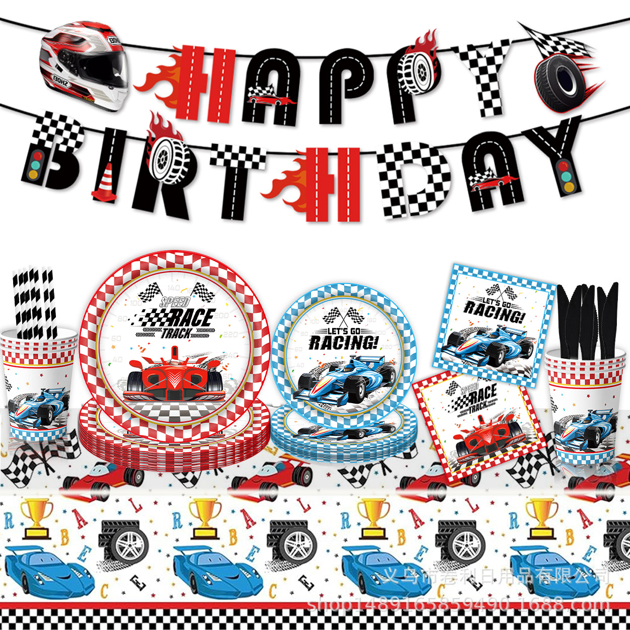 アマゾン新型レーシングテーマパーティー用品レーシングパーティー装飾使い捨て食器ティッシュ紙コップテーブルクロス