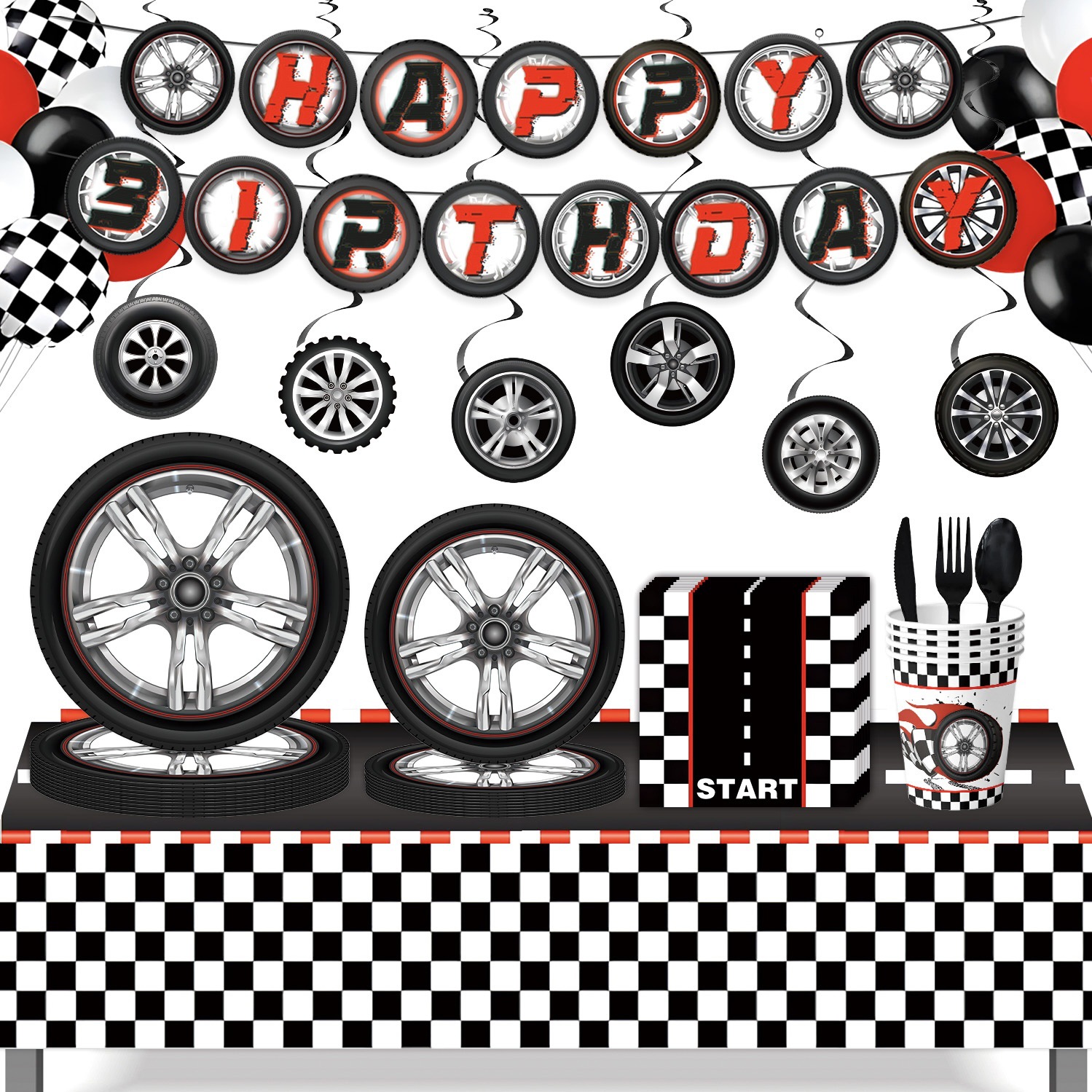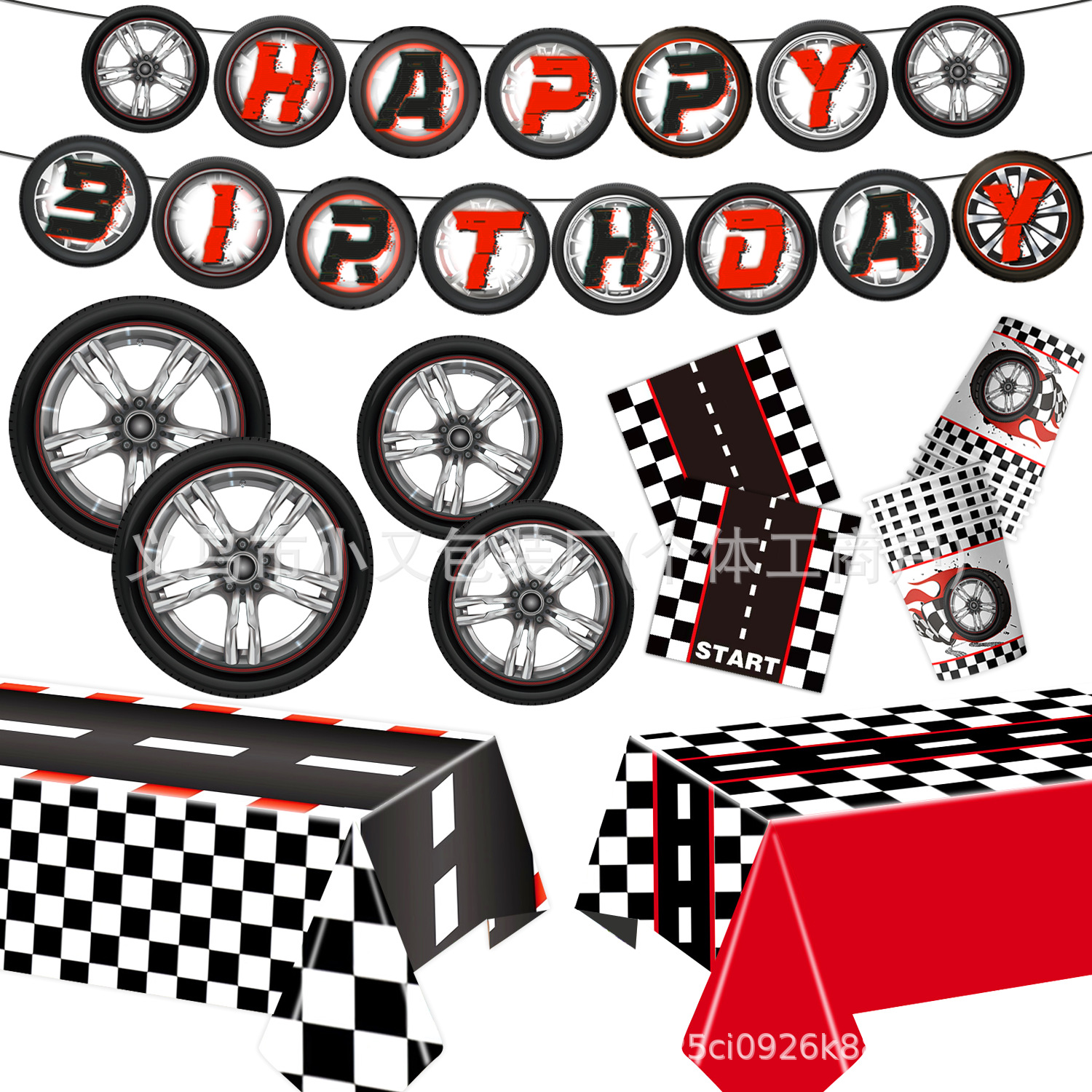 新しいレーシングテーマパーティー用品誕生日装飾食器ホイールレイアウト小道具バナーテーブルクロスハンギングペーパータオル
