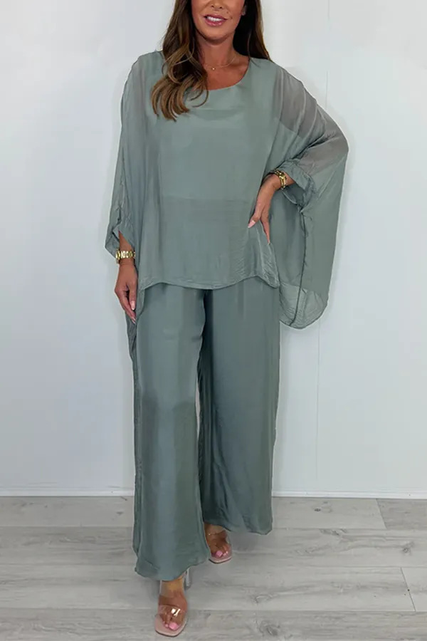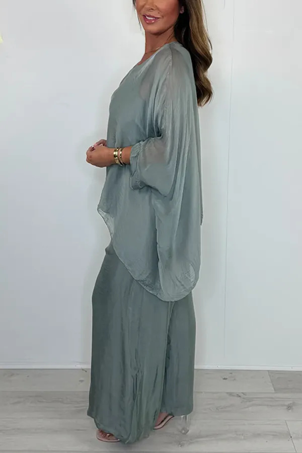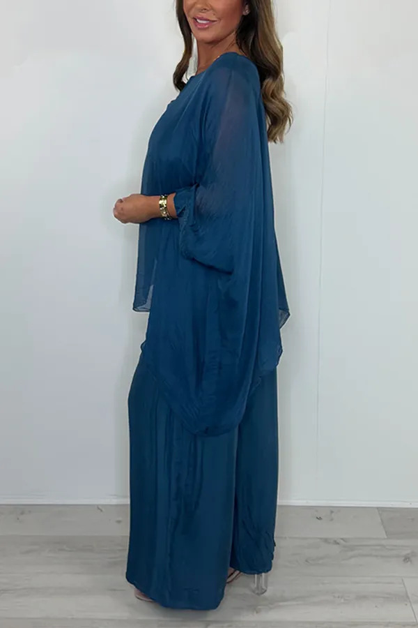 2025夏アマゾン欧米越境爆品ファッションゆるいシフォン長袖上着ワイドレギンスカジュアルスーツ