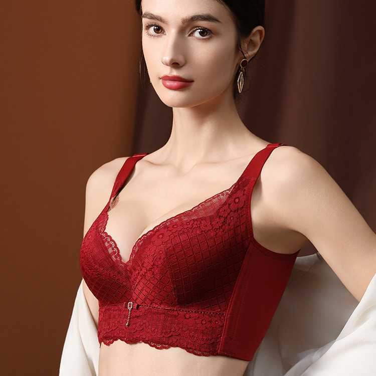 大红本命年结婚聚拢大胸显小内衣女收副乳防外扩软钢圈全罩杯文胸
