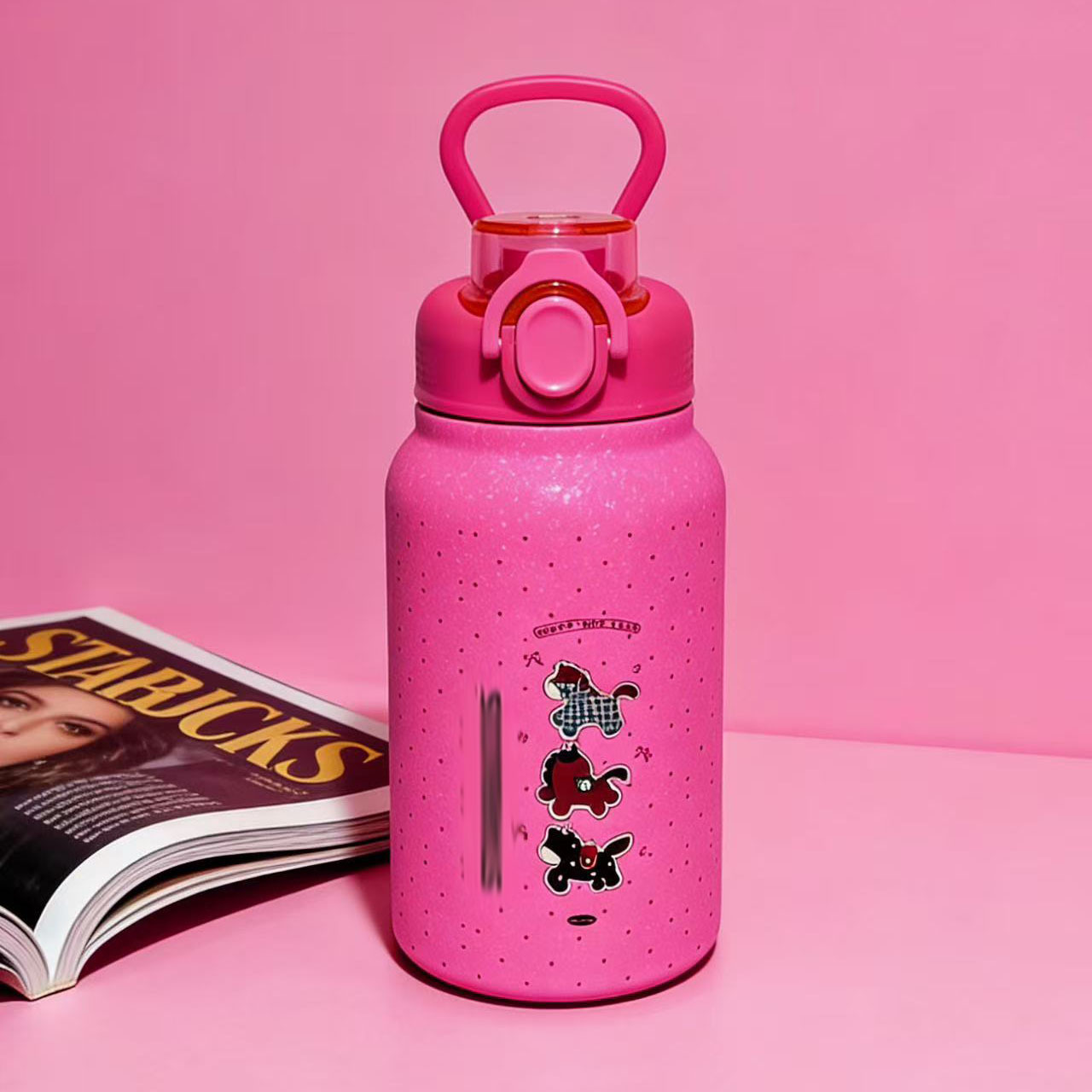 星爸爸薄荷绿晶粉色冰霸杯吸管杯高颜值大容量不锈钢水杯带手柄
