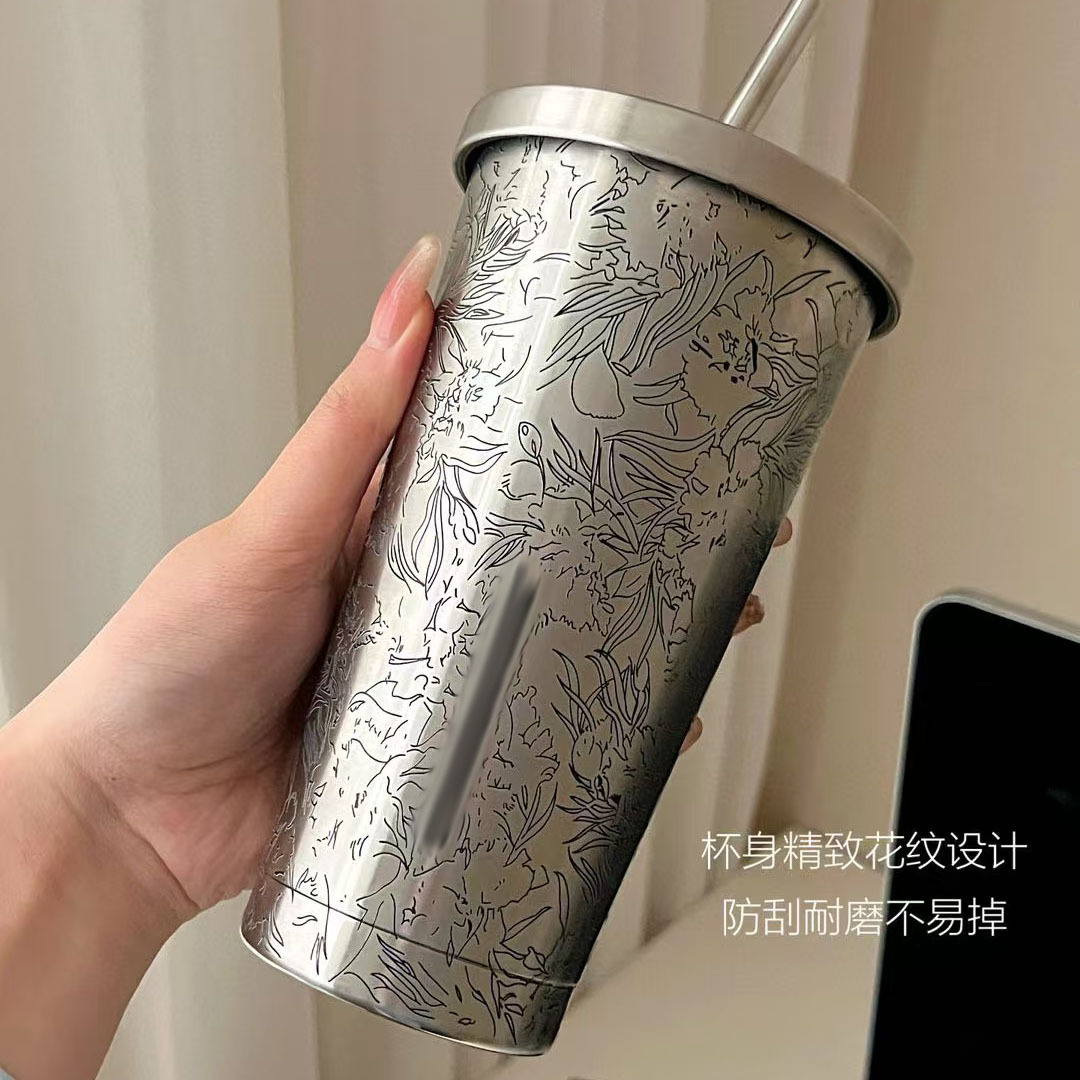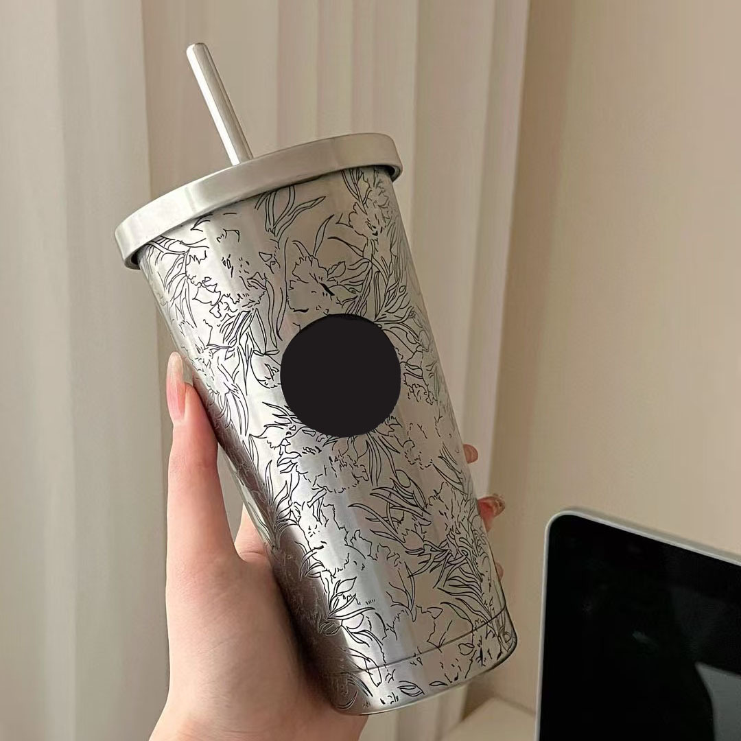 2025新型星のお父さんのステンレスの地色の経典の万花図のストローの杯の保温の保冷の杯の車のコップ
