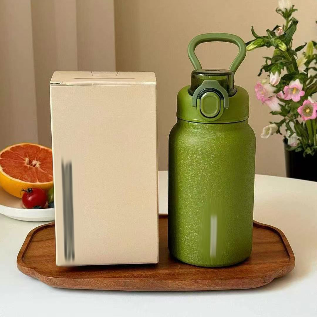 スターダッドパピー ダブルドリンクポート 304 ステンレス鋼 グリーン断熱カップ 大容量 オフィス 車用ウォーターカップ