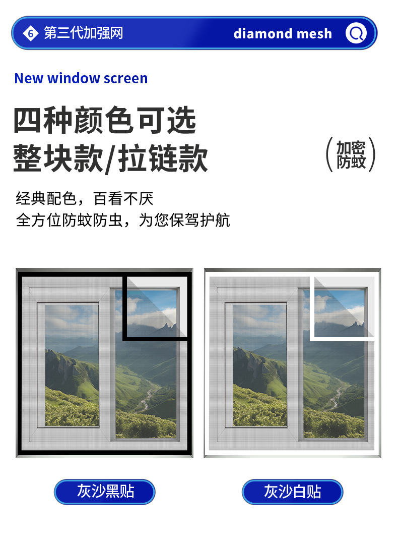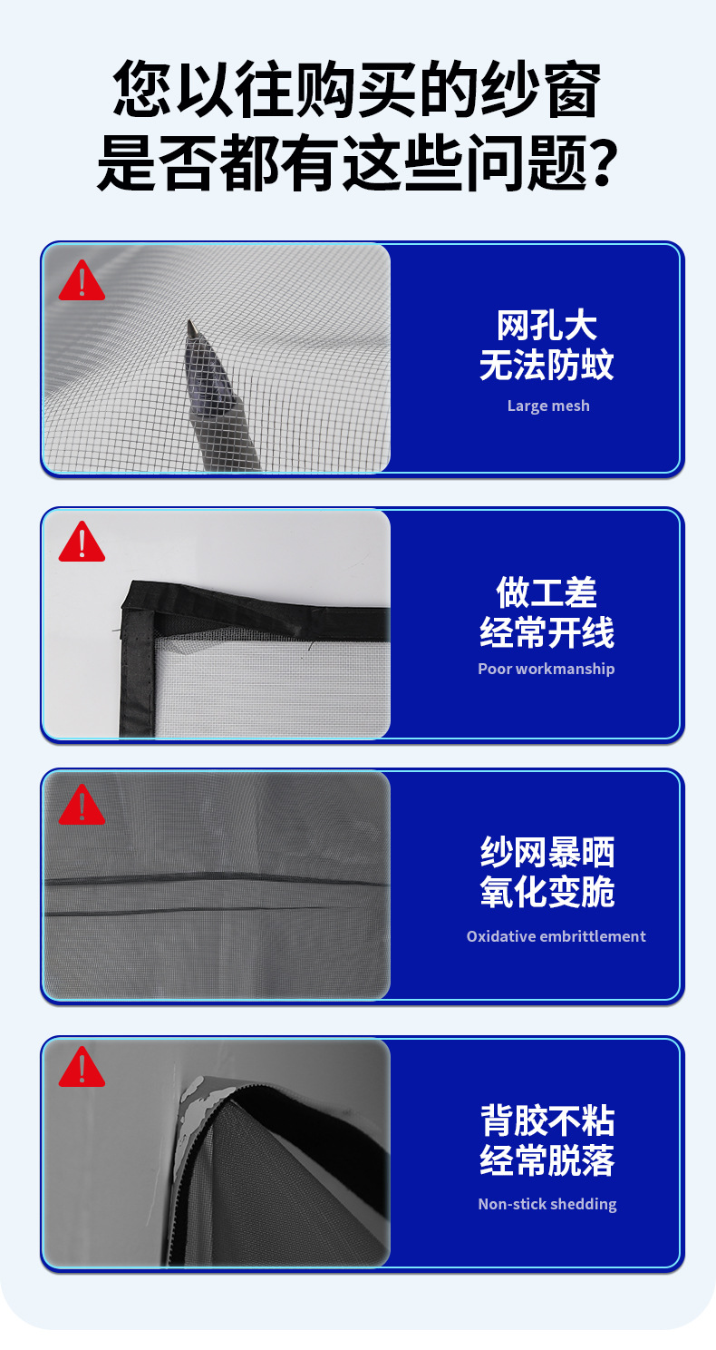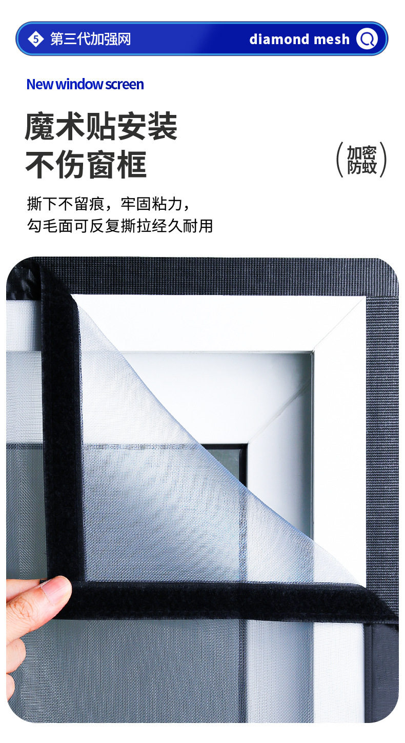 厂家直供内开窗纱窗网自装自粘免打孔魔术贴防蚊虫窗纱网加密纱