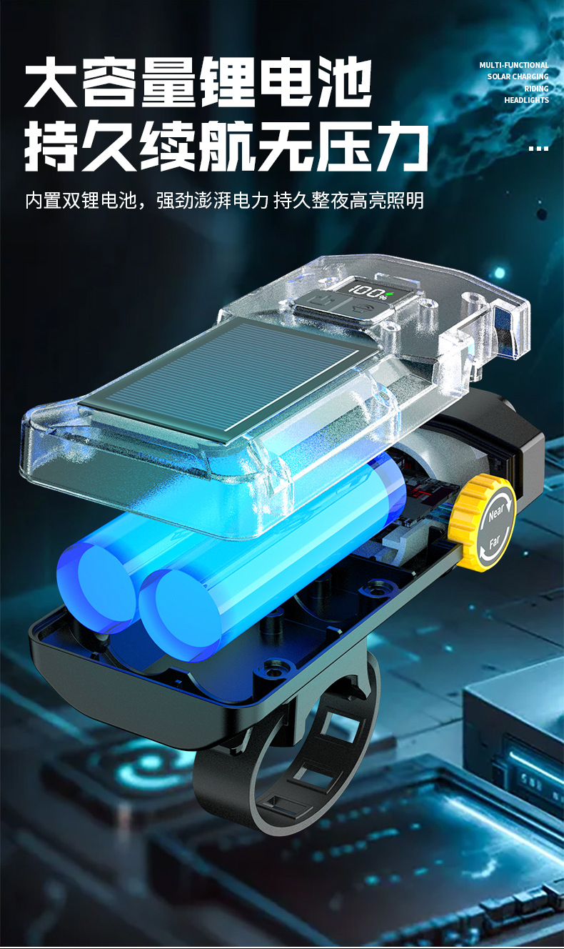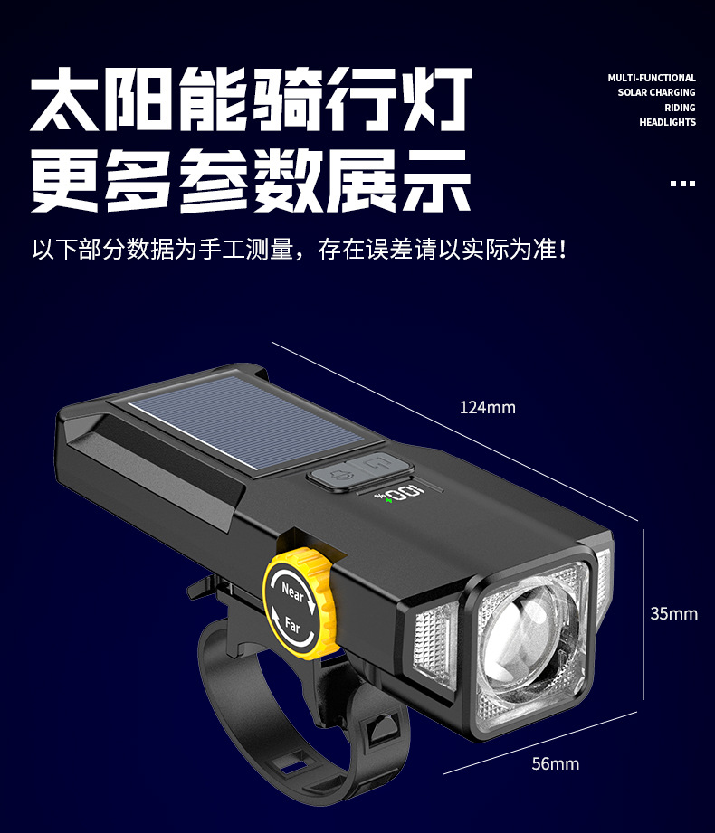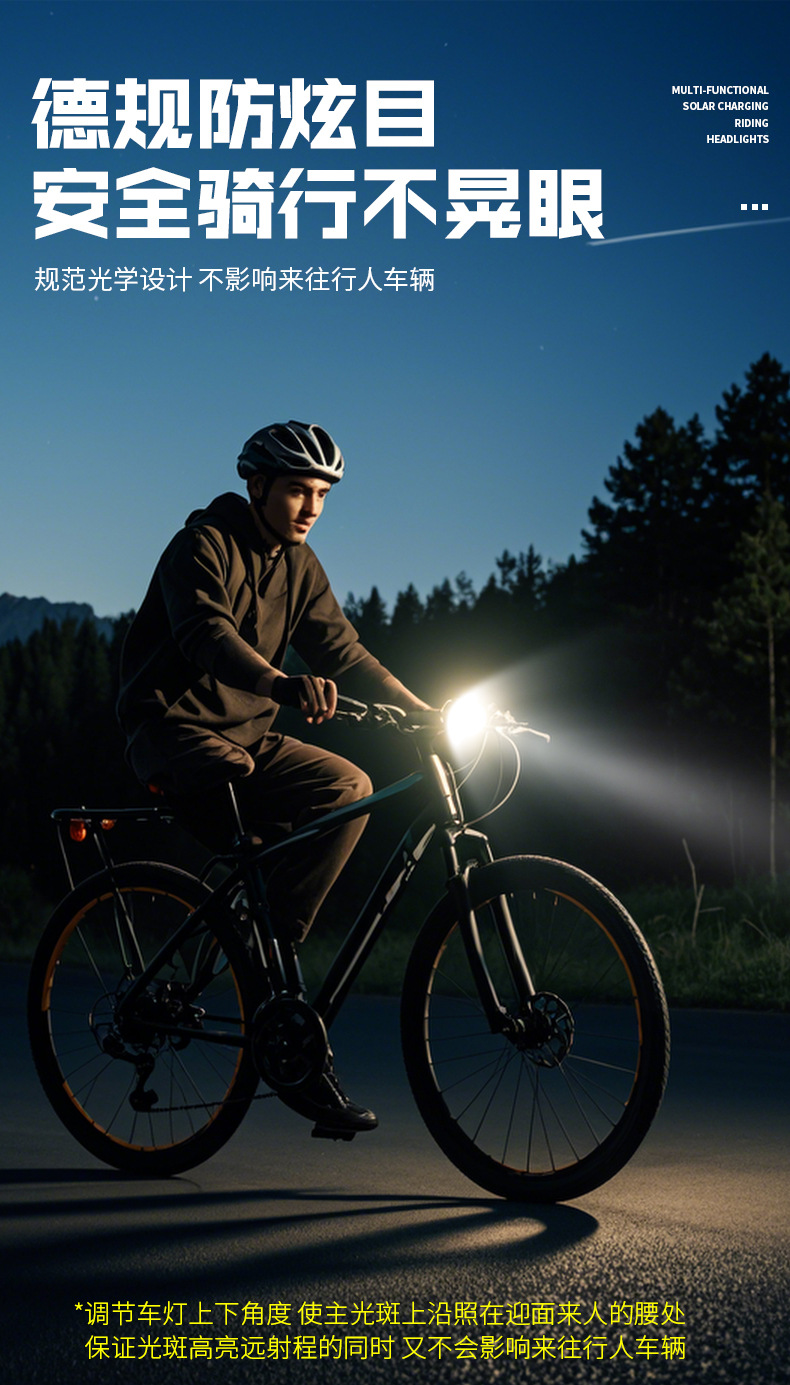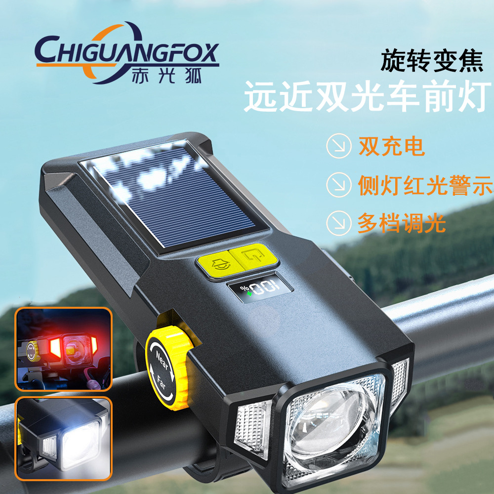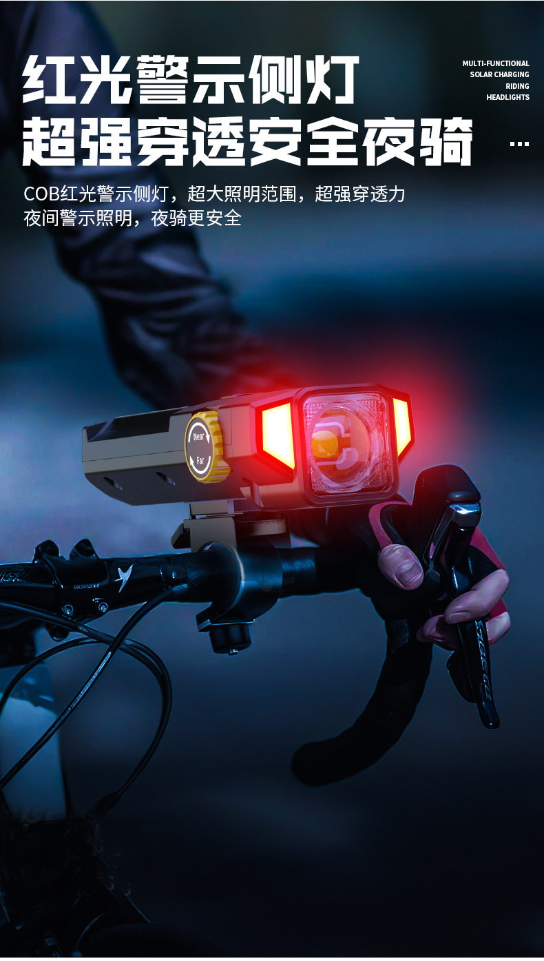 太陽エネルギー充電自転車ライト防グレア夜騎乗強光遠射山地道路車装備部品騎行ライト