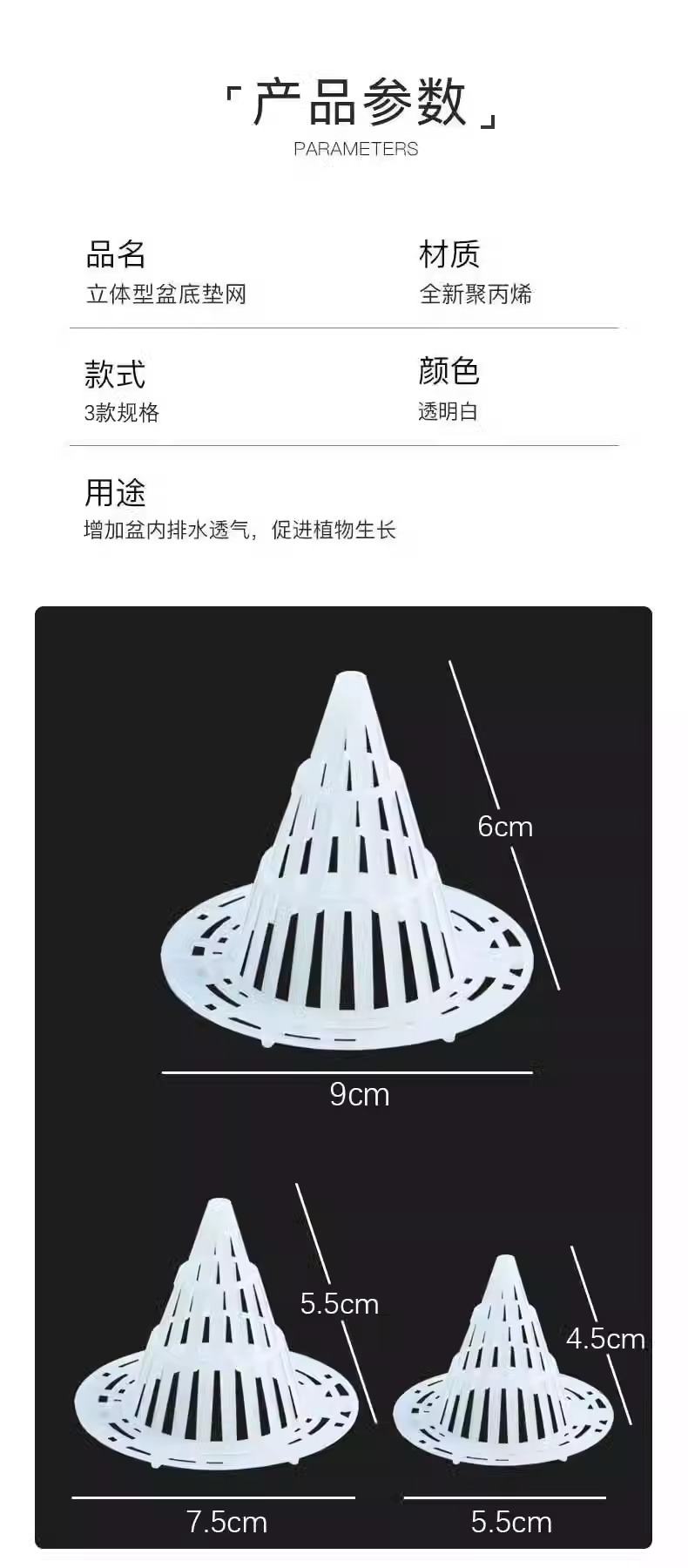 新款花盆锥形火山垫底兰花塑料网沥水多肉根部防烂根专用透气垫片