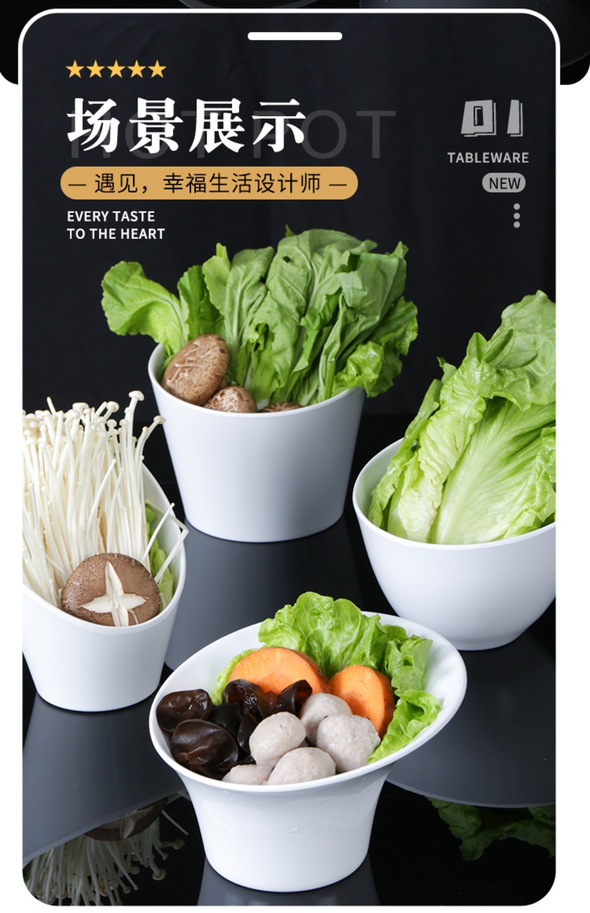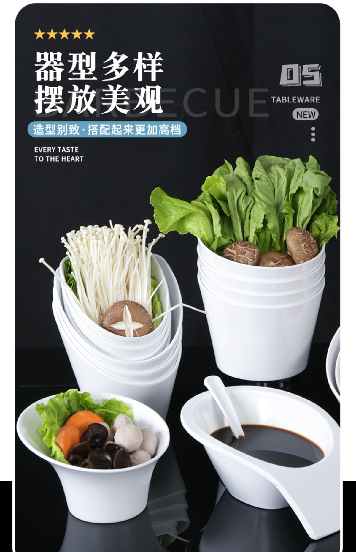 Taide 白鍋レストラン食器ビュッフェ調味料ボウルクリエイティブ商業レストランメラミン模造磁器斜め野菜バケツ