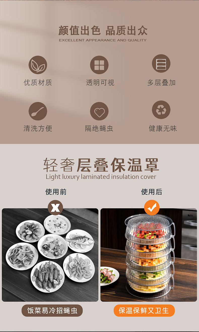 野菜カバー防塵ハエ防止保温多機能メニュープレート新型透明多層料理カバー残菜収納
