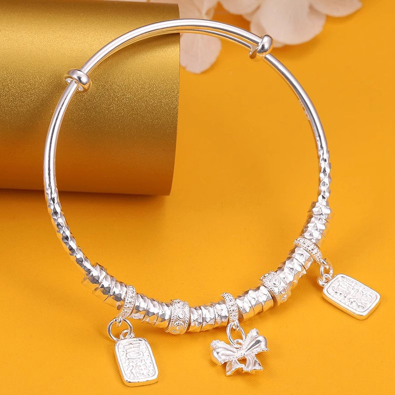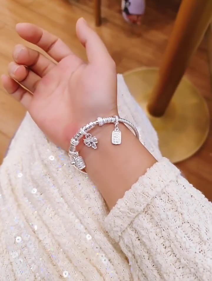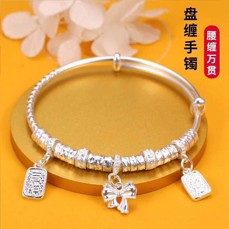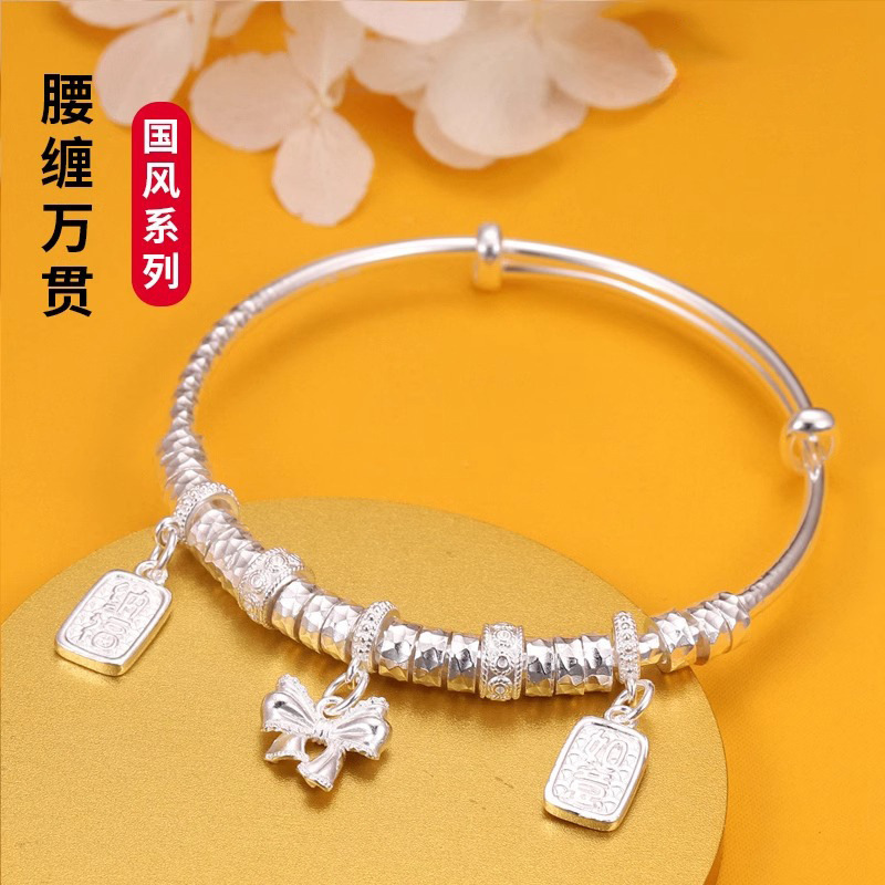 2025新型腰巻き万貫銀ブレスレット国潮民族風蝶結び純銀ブレスレット