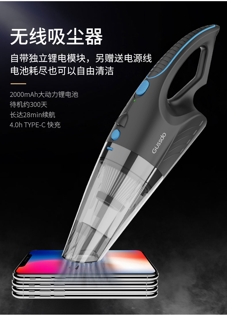 グスト車載掃除機車用家庭用小型手持ち高出力大吸引力超携帯無線充電
