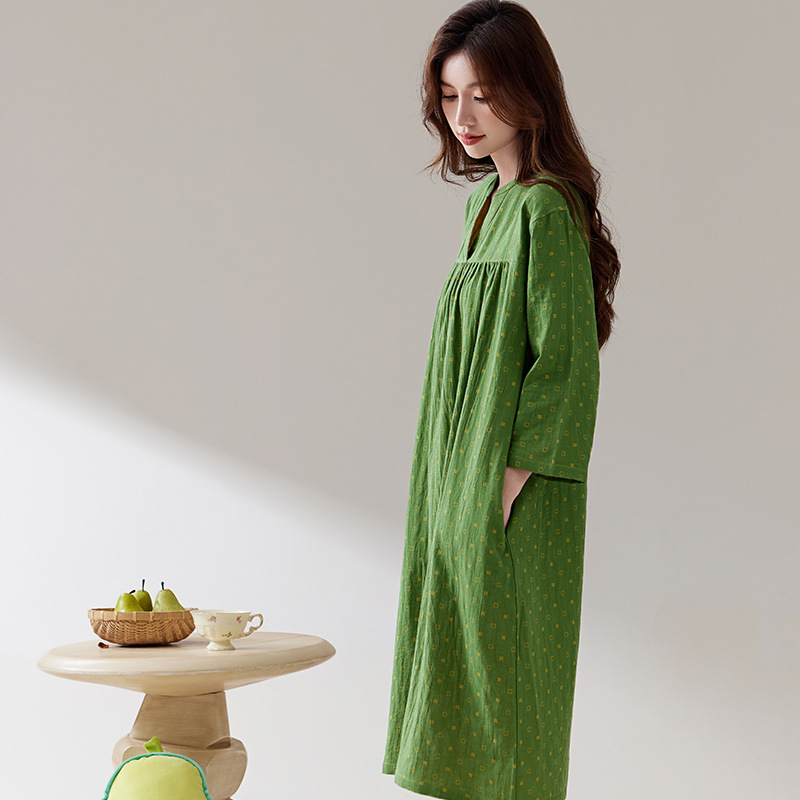 日本式無印二重糸寝スカート良品全綿女性ホームウェアパジャマ長型寝スカート純綿寝衣通気性