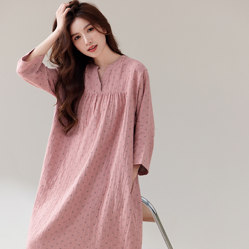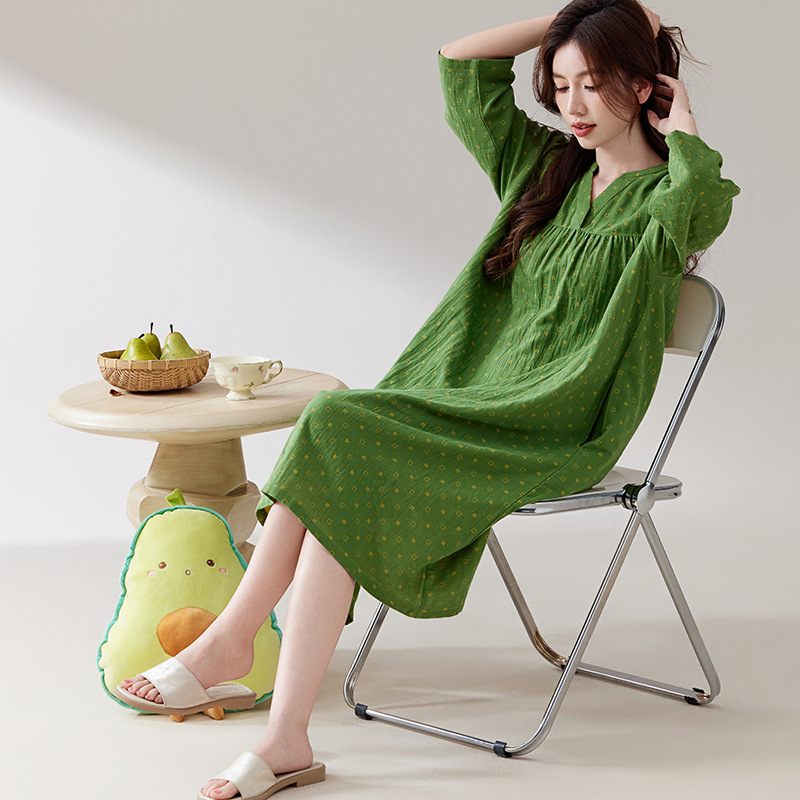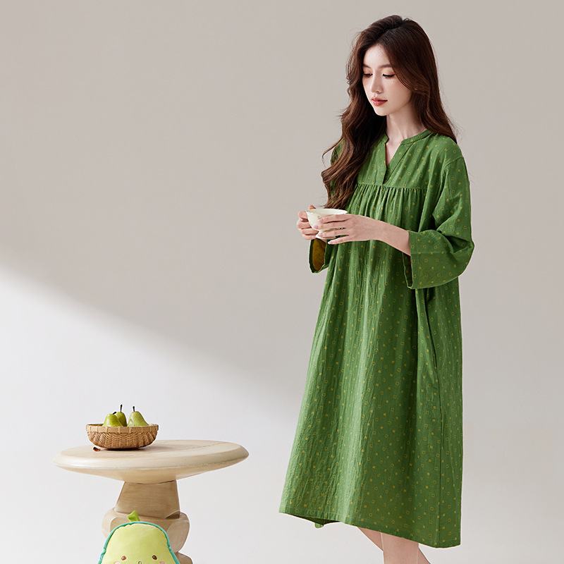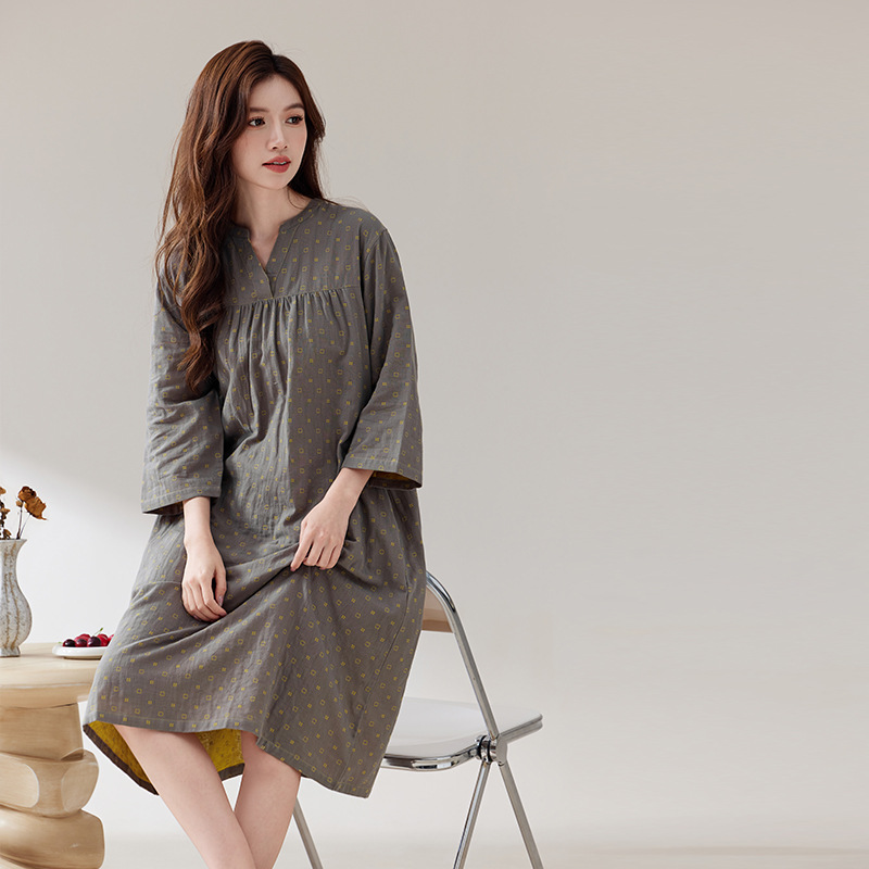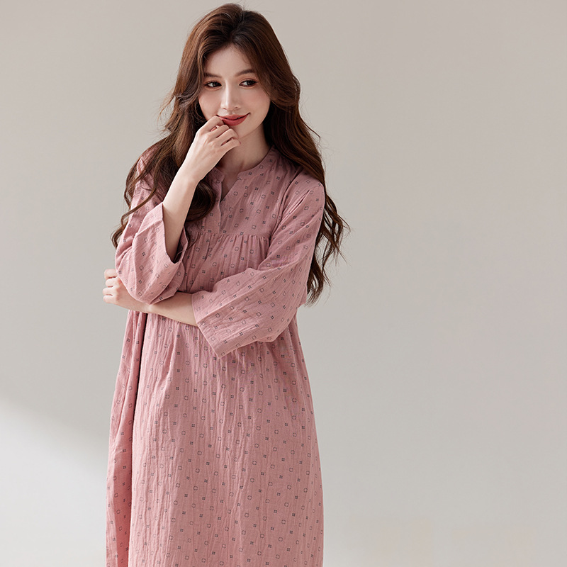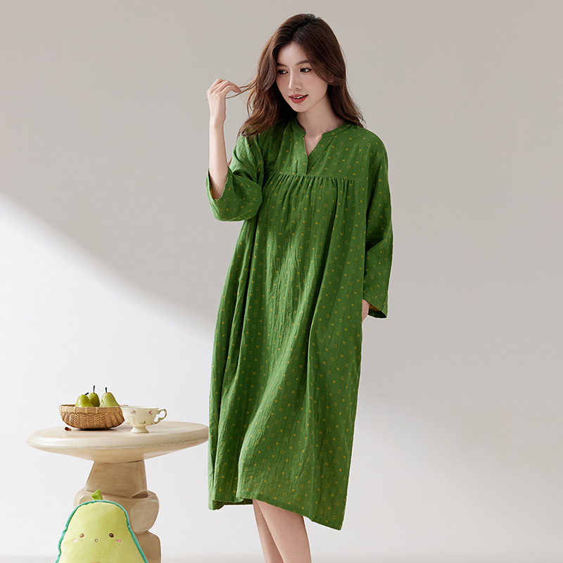 日系纯棉纱布睡裙睡衣女士春秋全棉长袖宽松可外穿薄款家居连衣裙