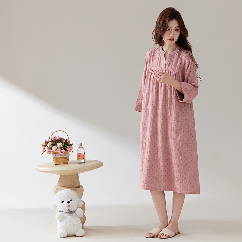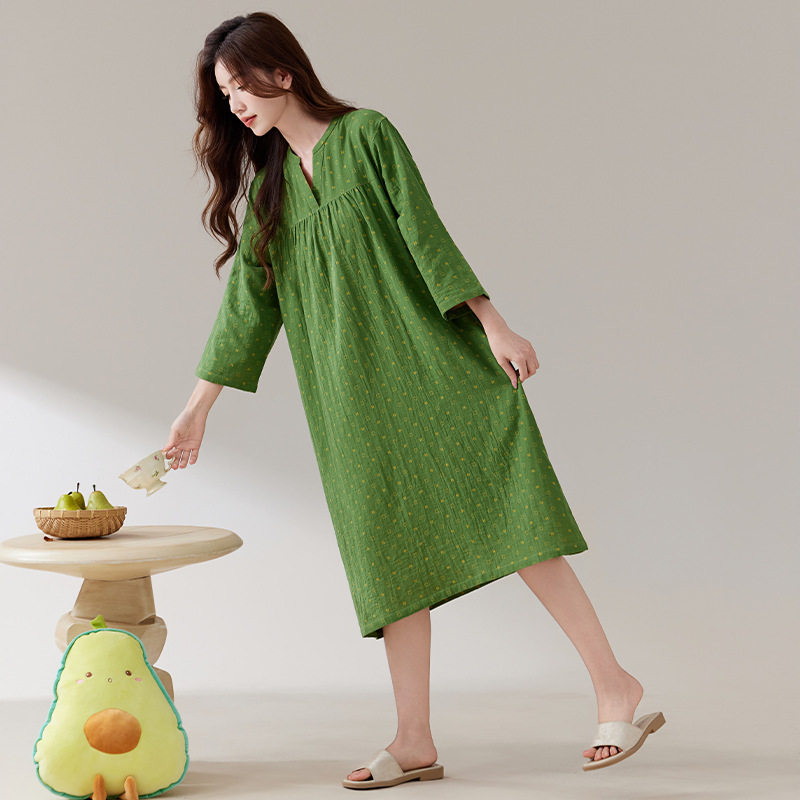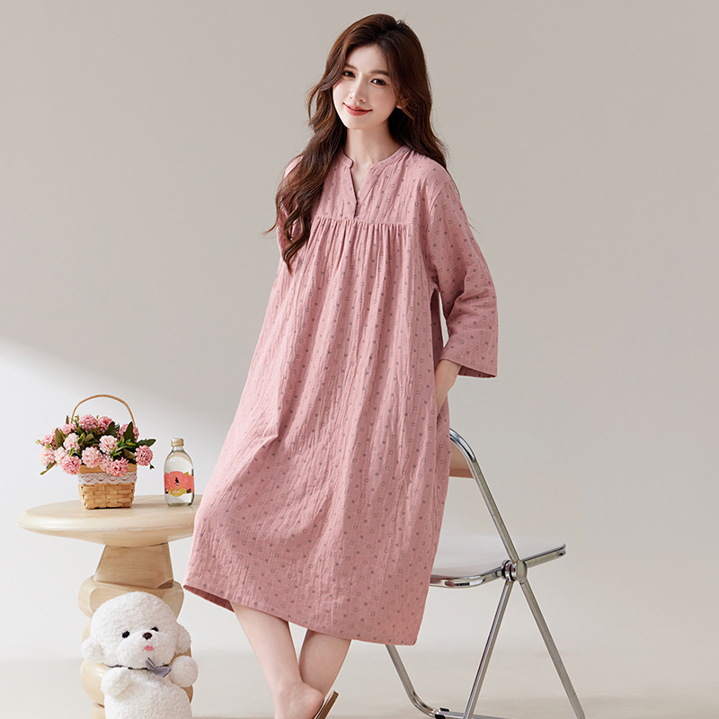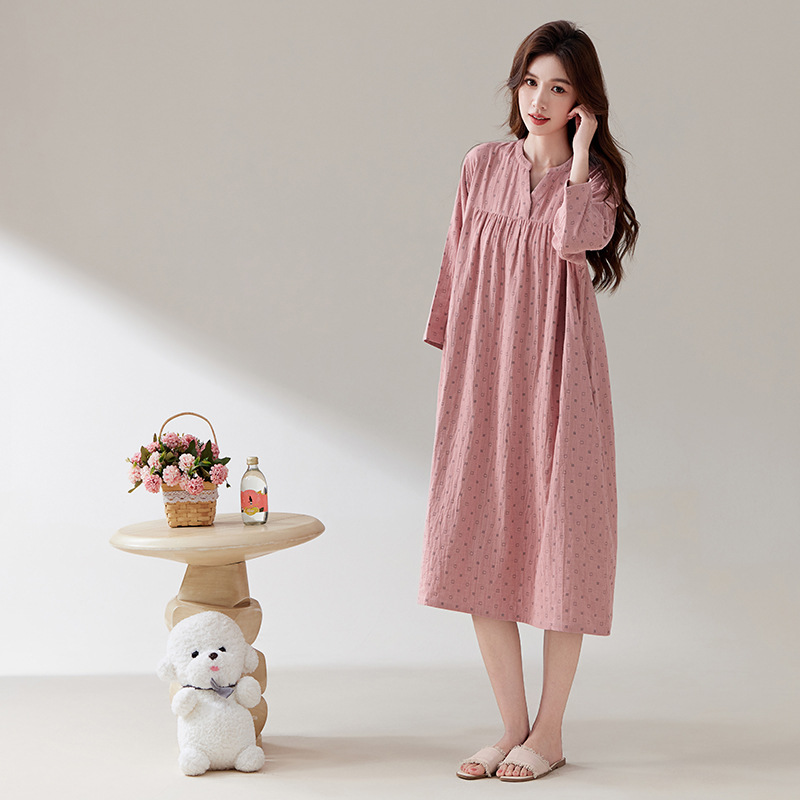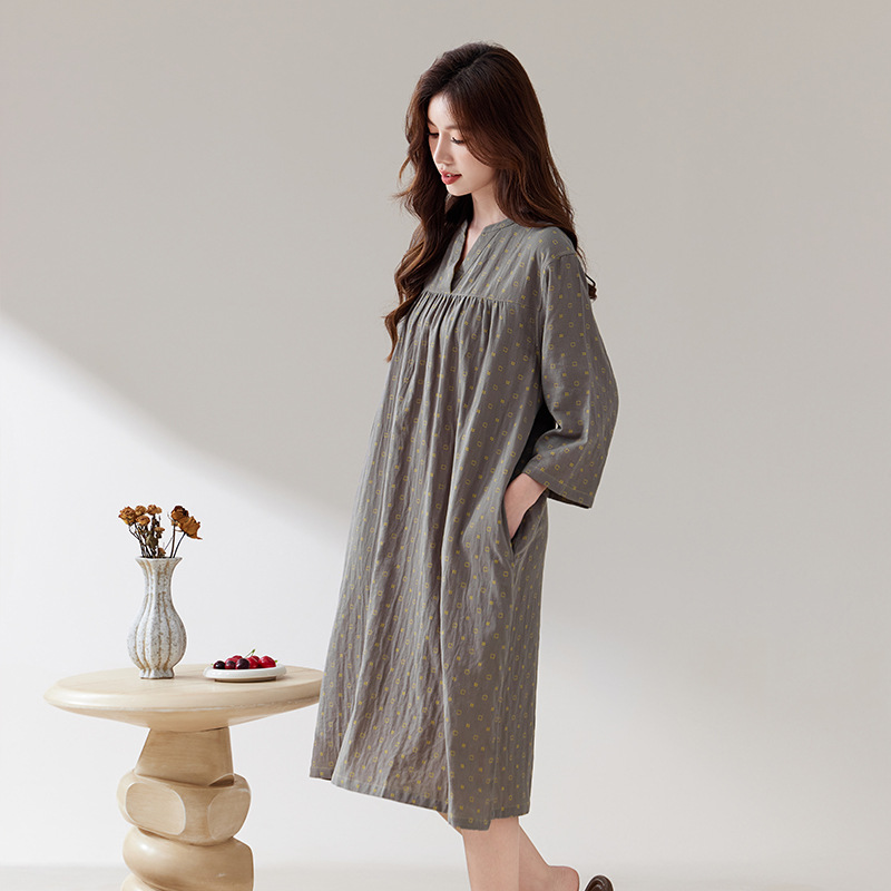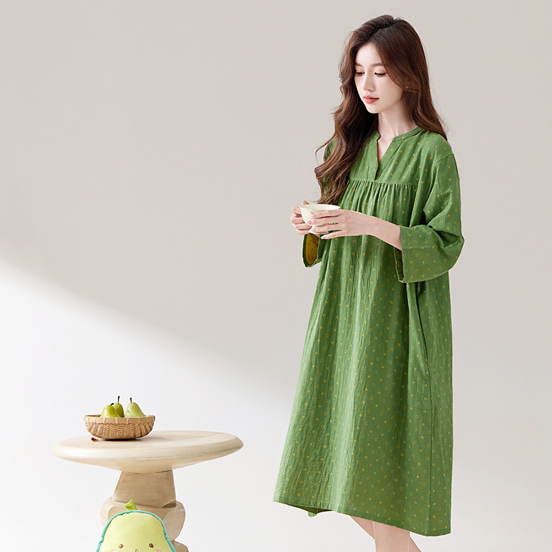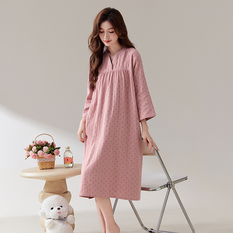 日系纯棉纱布睡裙睡衣女士春秋全棉长袖宽松可外穿薄款家居连衣裙