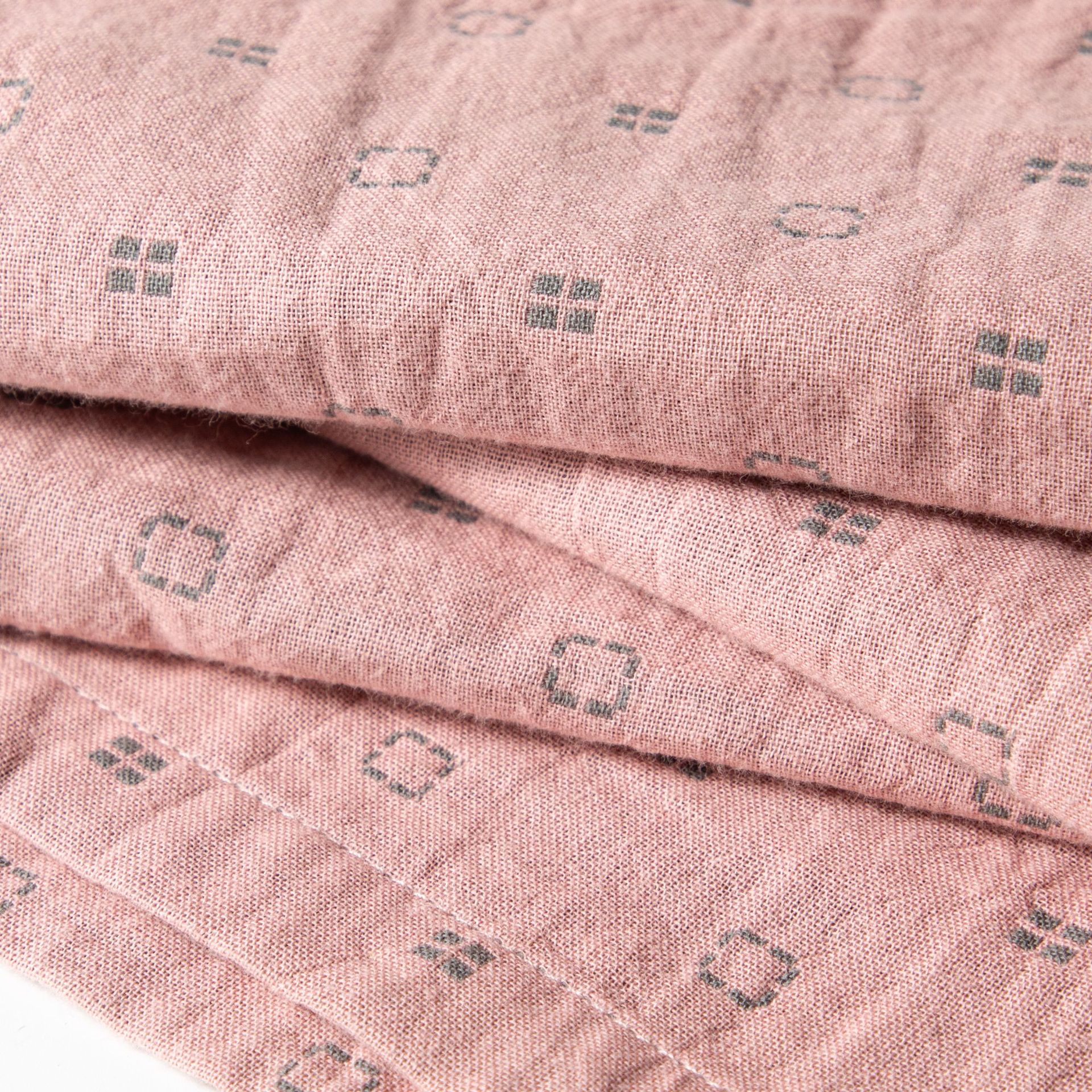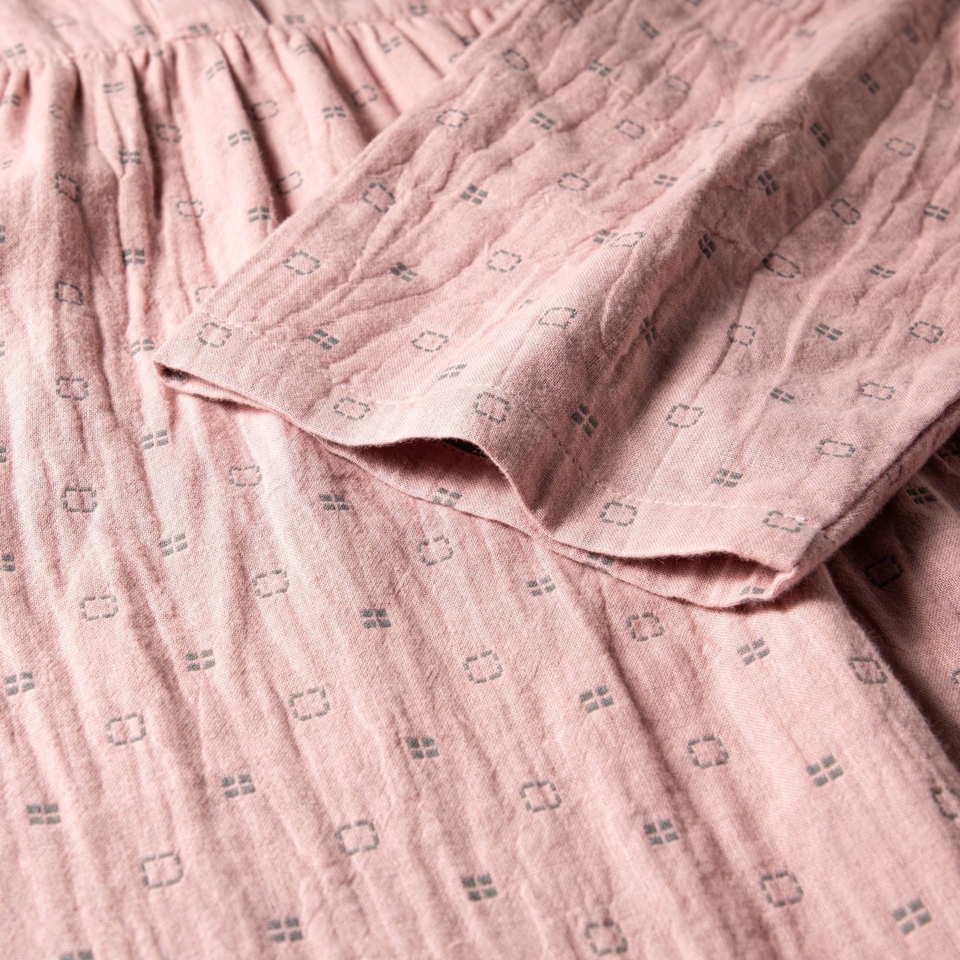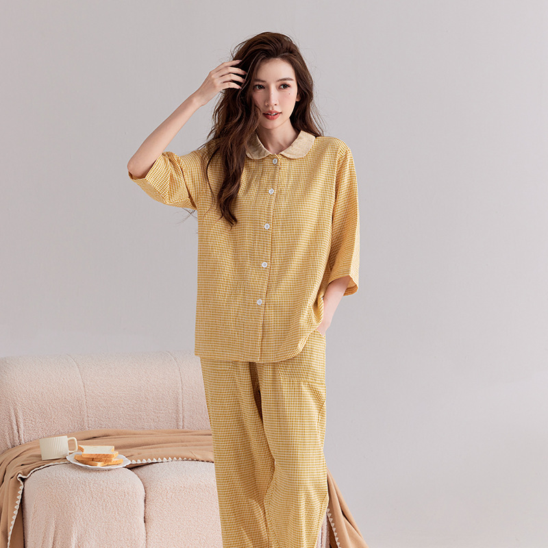 日文无印全棉双层纱家居服良品七分袖细格纹睡衣女士家居服套装