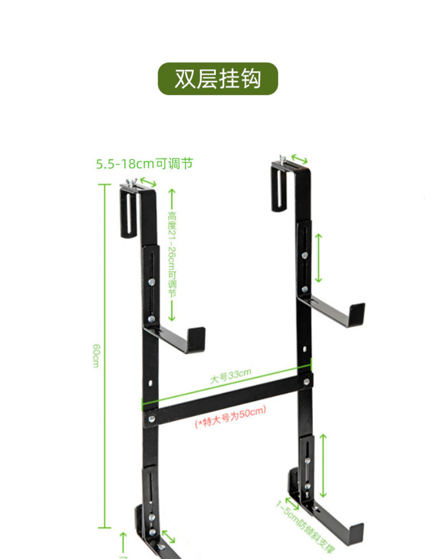 バルコニー手すりフック植木鉢ハンガー吊り下げ調節可能な吊り下げ収納ラックフラワーラック窓枠屋外鉄ブラケット