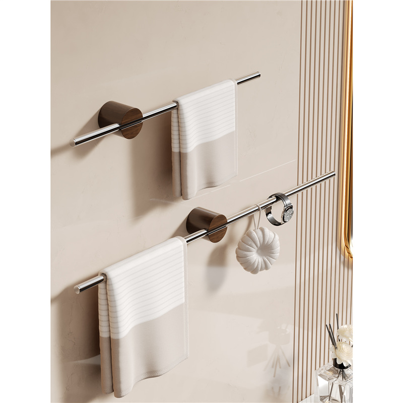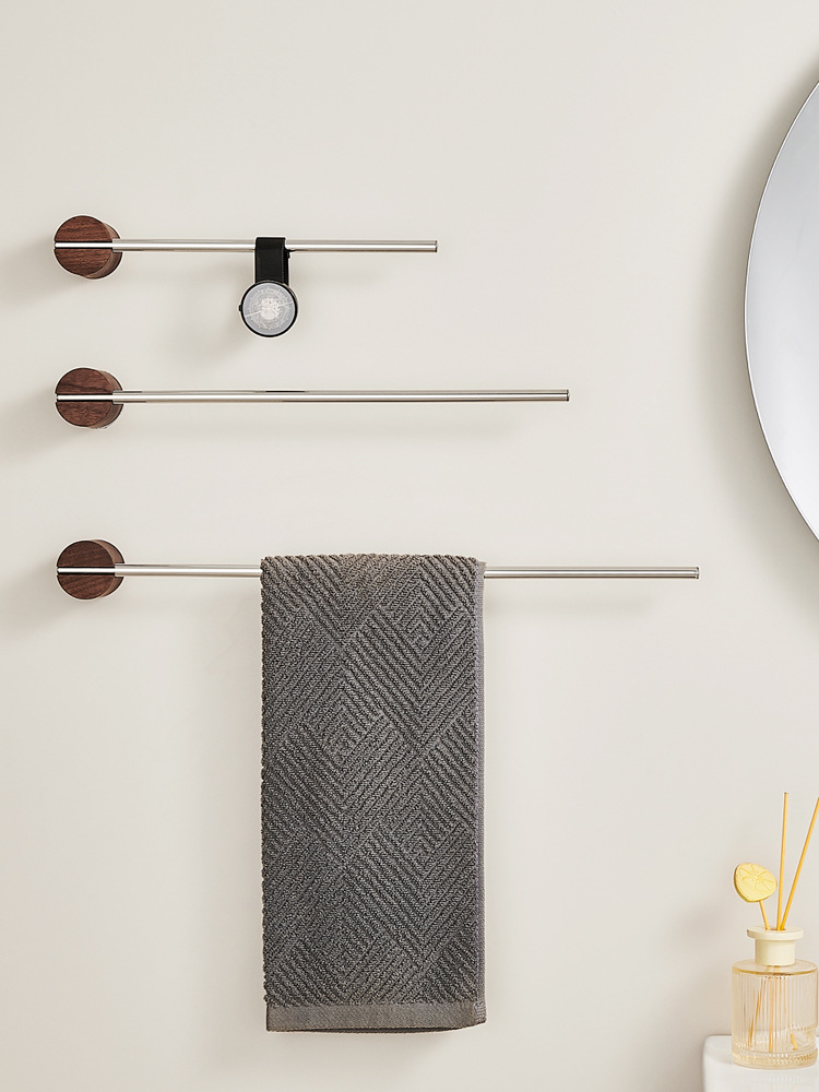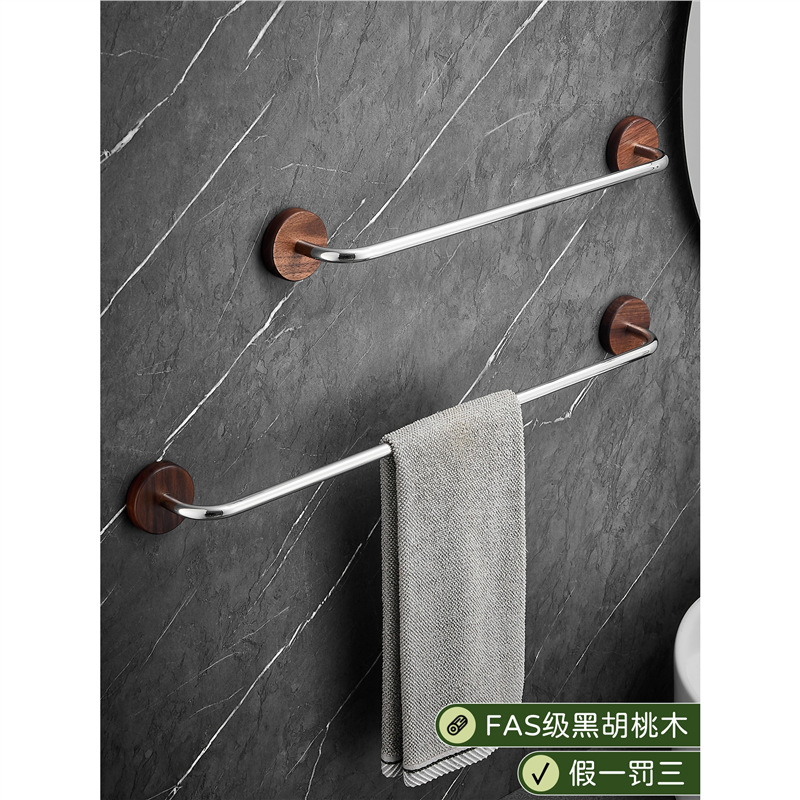 胡桃木不锈钢卫生间毛巾架免打孔单杆极简浴室毛巾浴巾挂杆置物架