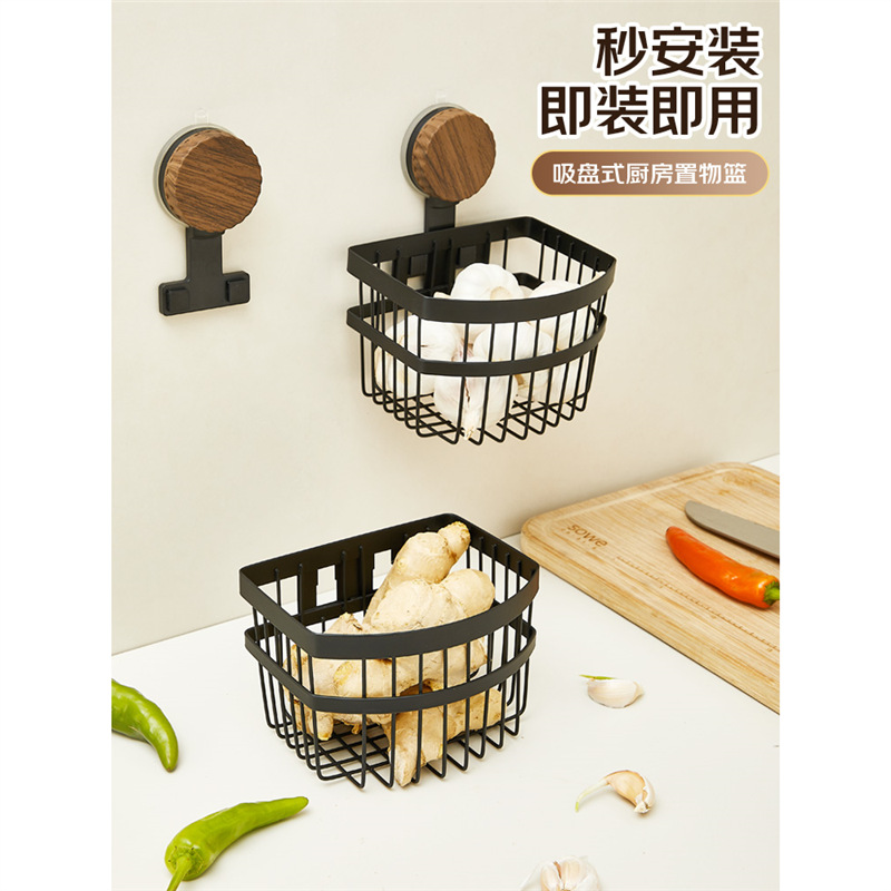 クルミ色の吸盤キッチン生姜とニンニク収納バスケット壁掛けバスケットカウンタートップステンレス鋼玉ねぎニンニク卵収納バスケット