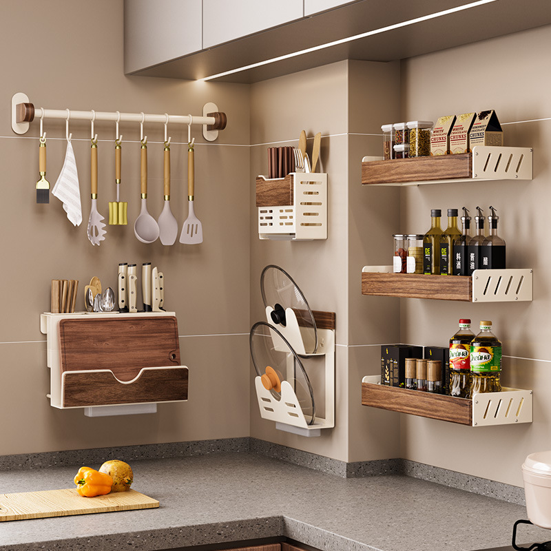 メラド胡桃木キッチン棚穴開けない調味料鍋蓋ナイフホルダー家庭用多機能収納棚