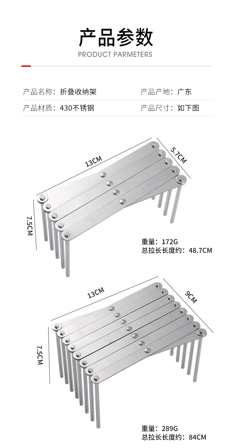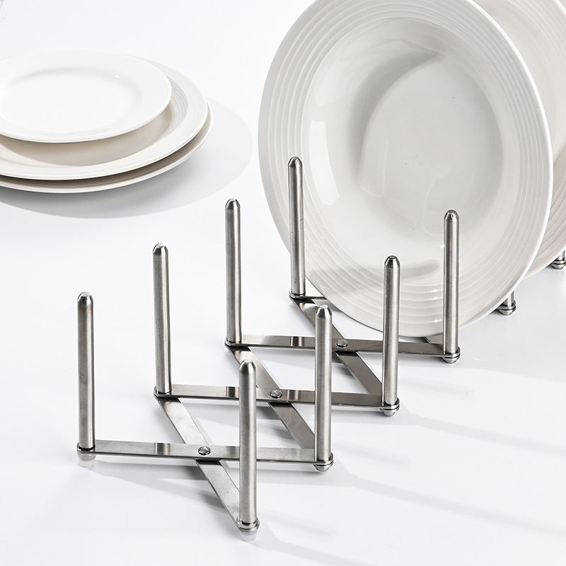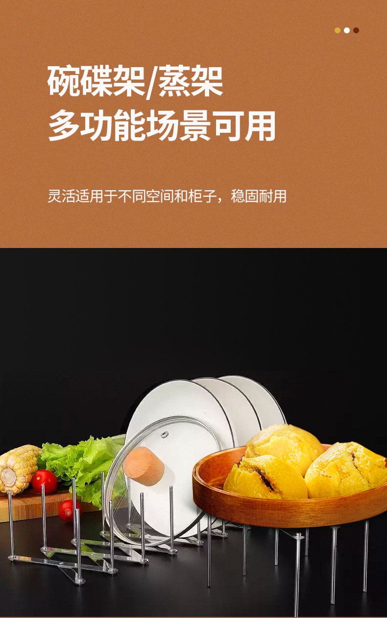不锈钢伸缩折叠架侧放盘子锅盖收纳架可拆卸多用途餐厅厨房置物架