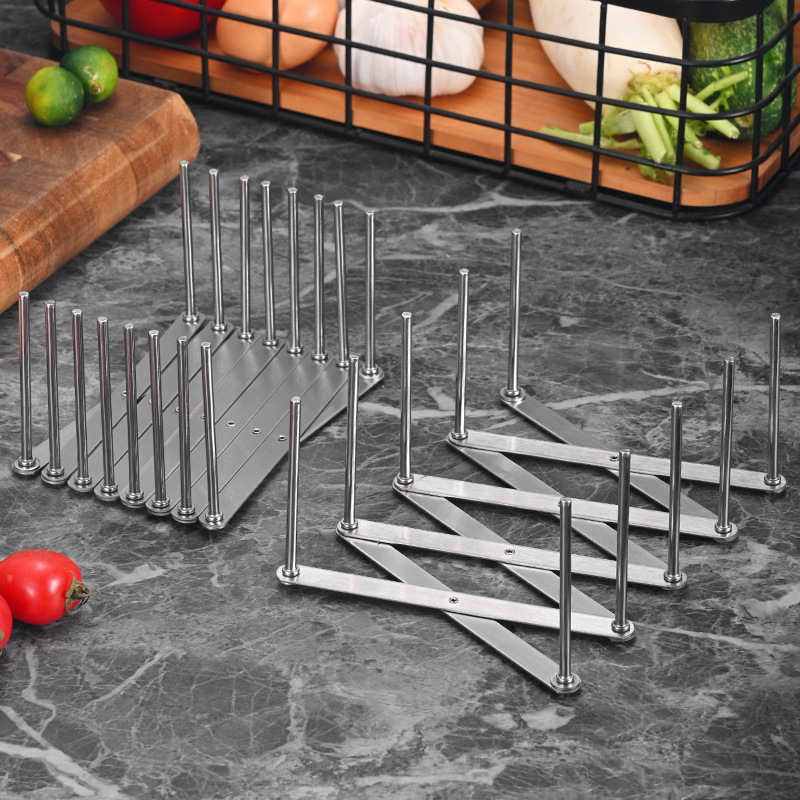 ステンレス製の格納式調節可能な食器棚収納ラックキッチン折りたたみ多目的蒸しラック鍋蓋ラック排水ラック