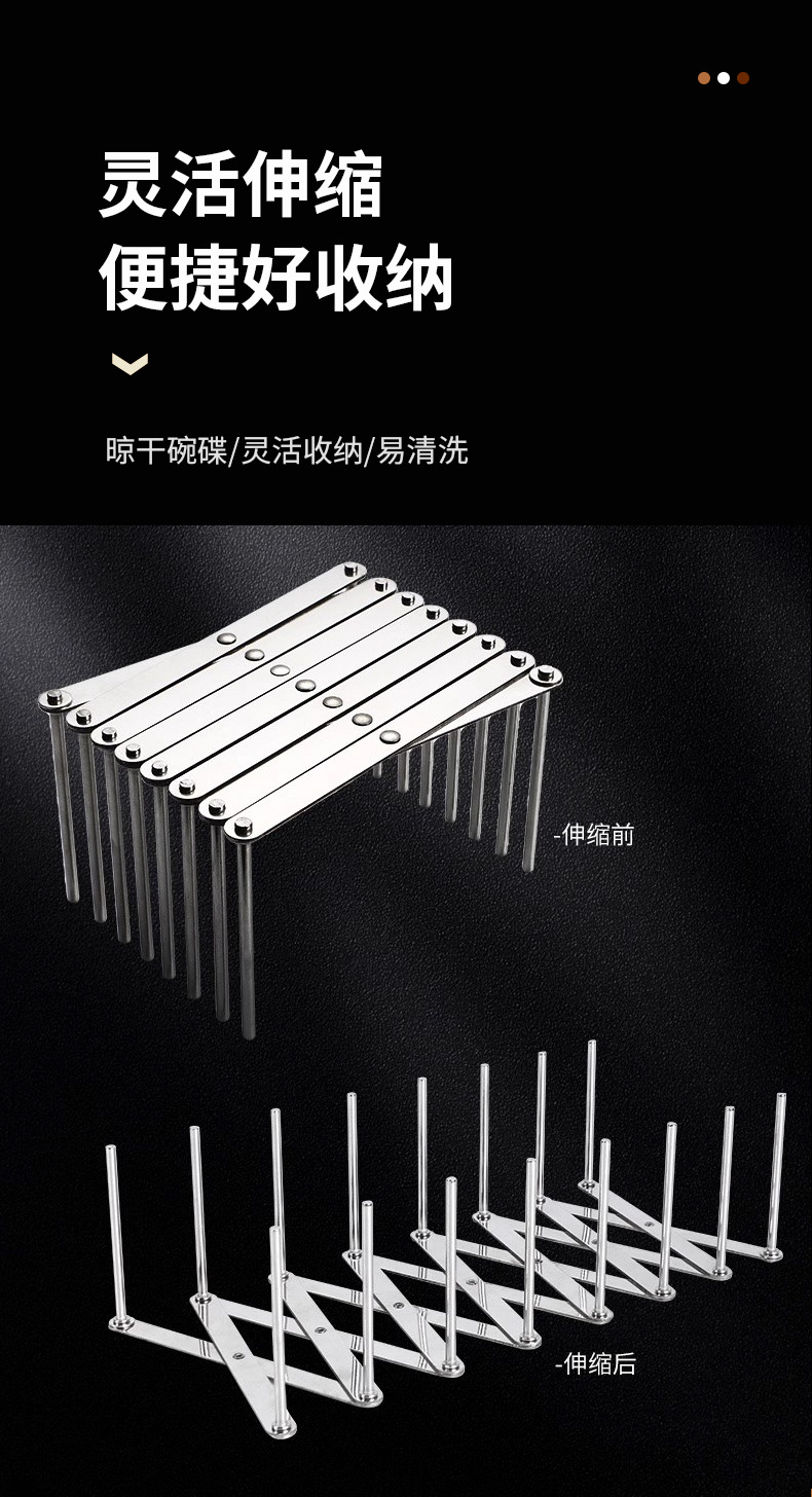 不锈钢碗碟置物架多功能可伸缩收纳架蒸架沥水可调节架厨房碗盘架