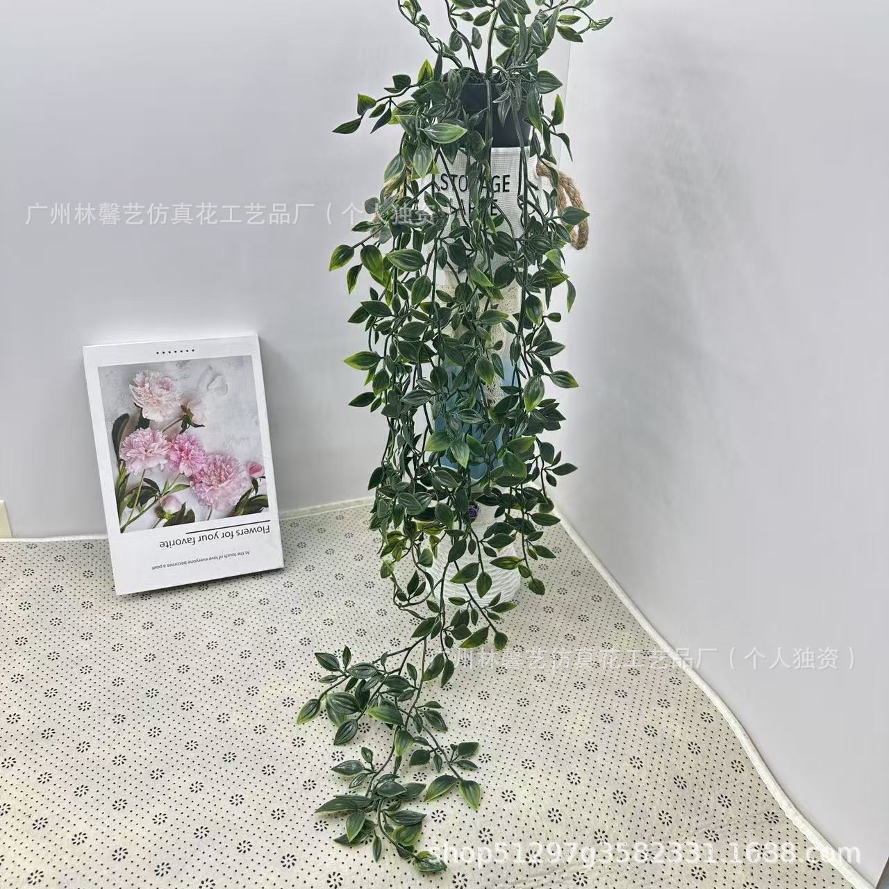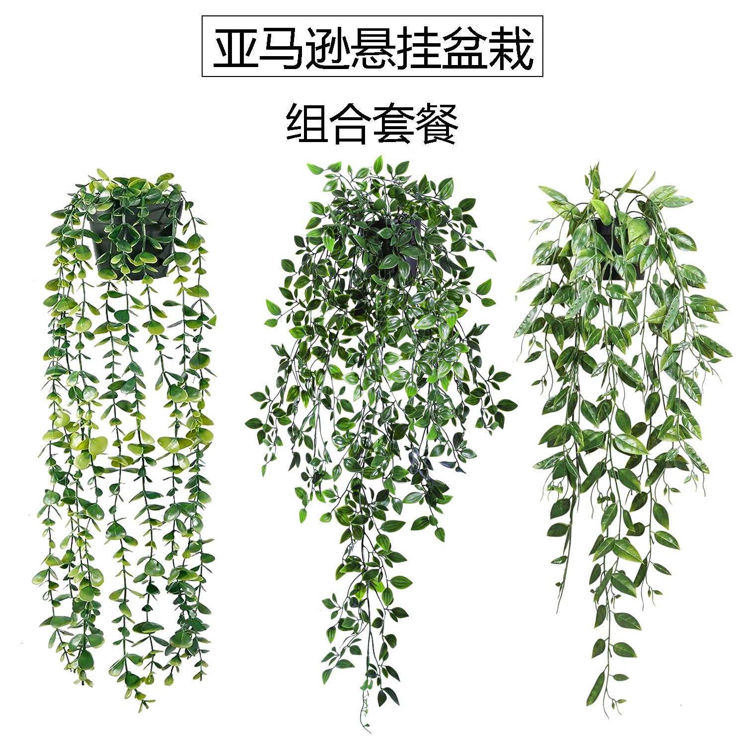 支持代发】。人造盆栽假悬挂植物 绿色桉树藤曼陀罗藤带花盆室内户外装饰