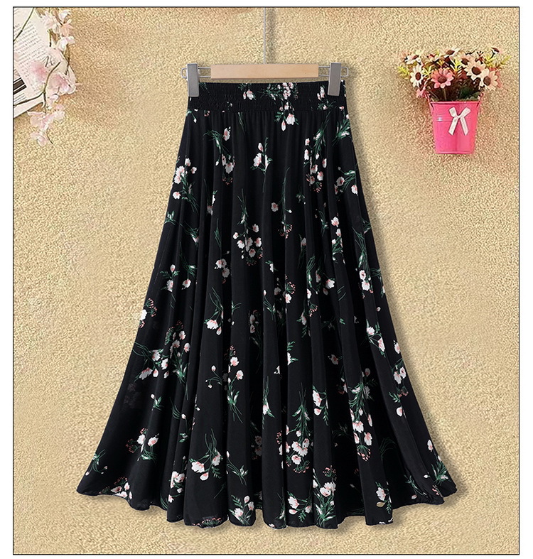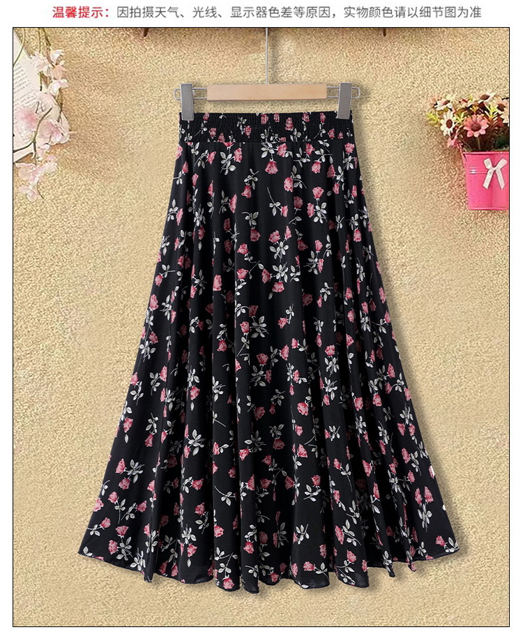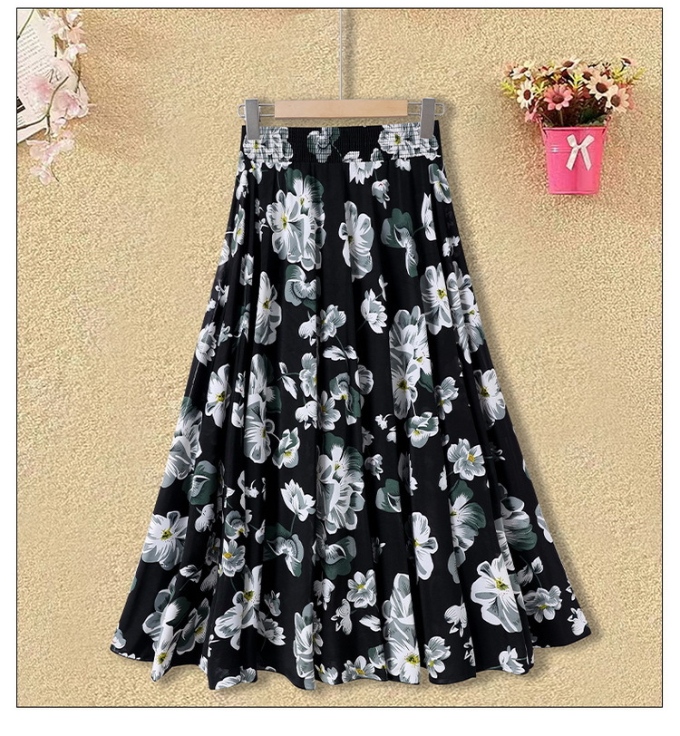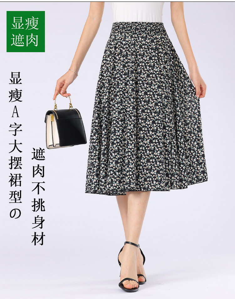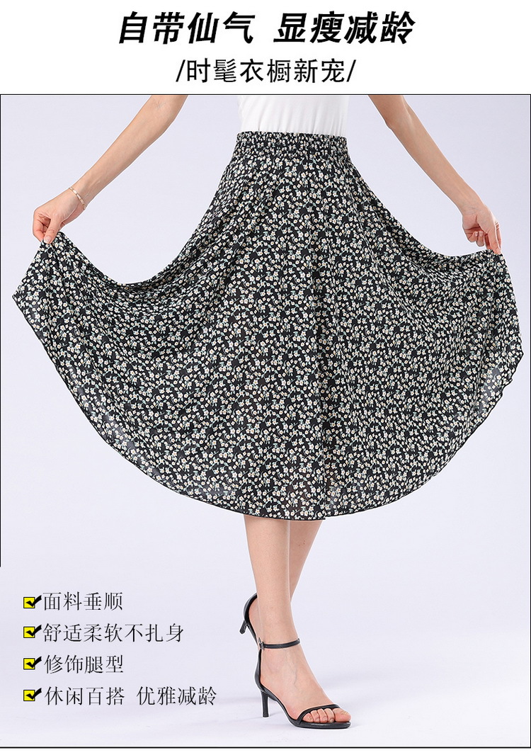 中高年のお母さんの半身のスカートの新型は腰の高い花の長いスカートの夏の中で長い長さの73長の広場のダンスの薄いです。