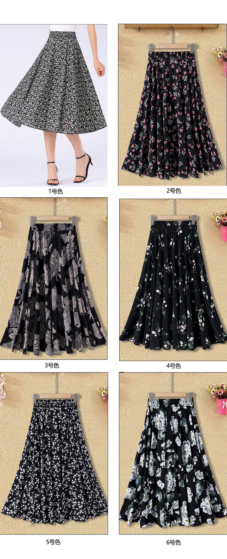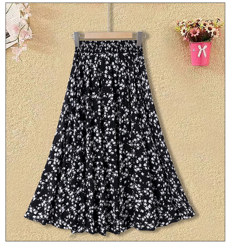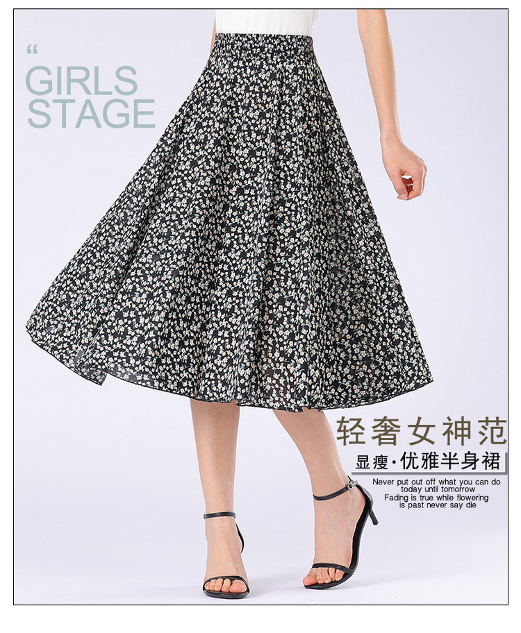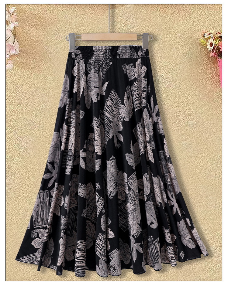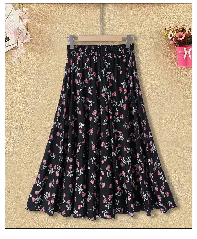 中高年のお母さんの半身のスカートの新型は腰の高い花の長いスカートの夏の中で長い長さの73長の広場のダンスの薄いです。