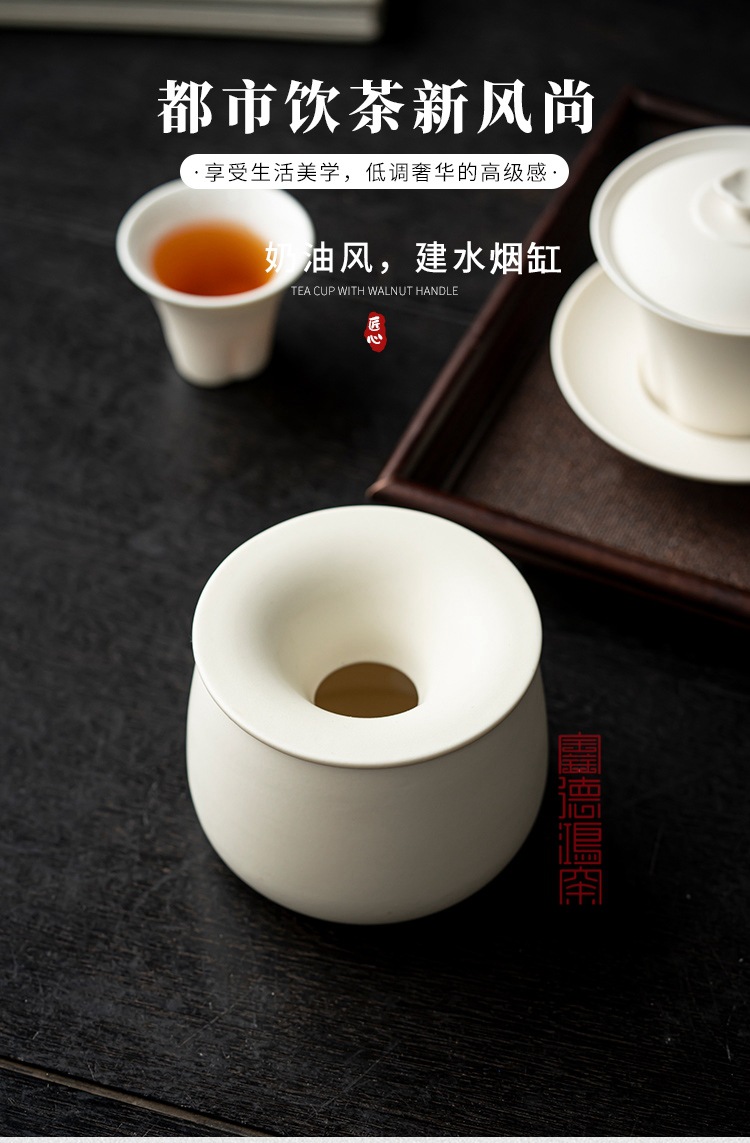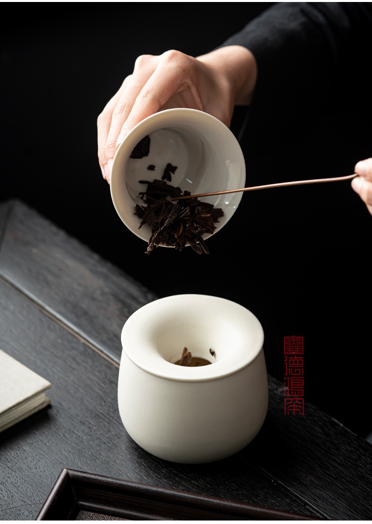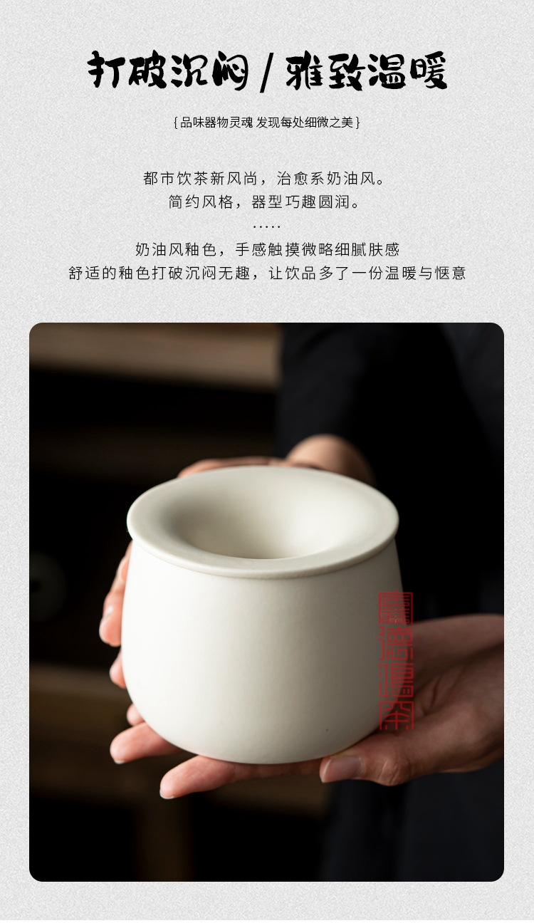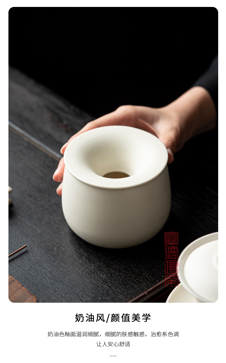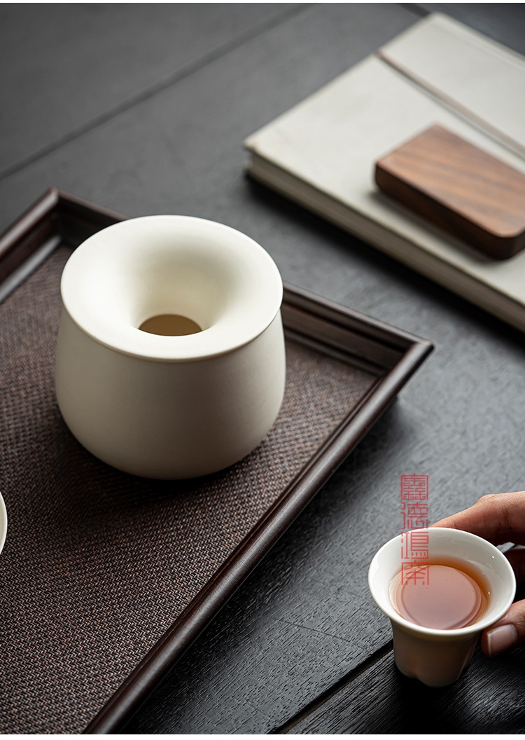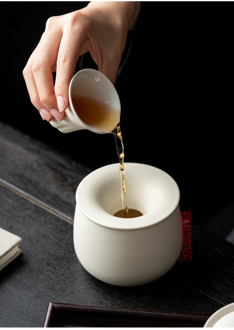徳鴻窯米黄陶磁器茶かすかめ茶桶廃水桶建水筒飛灰防止灰皿創意茶道部品