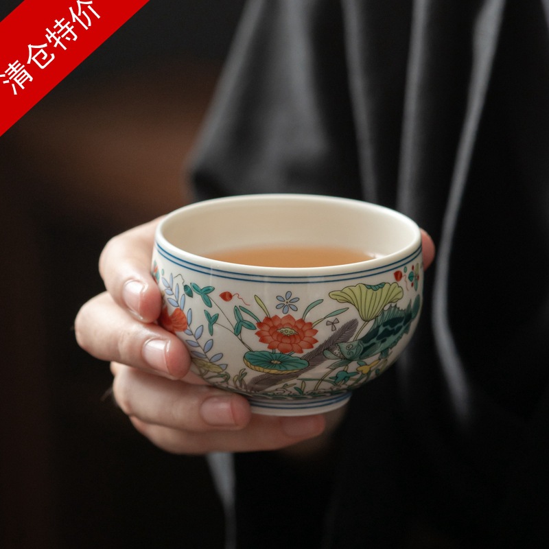 【在庫一掃セール】陶磁器の主杯 粉彩魚藻模様 レトロな茶杯 中国風茶杯 模古茶杯 シングルカップ