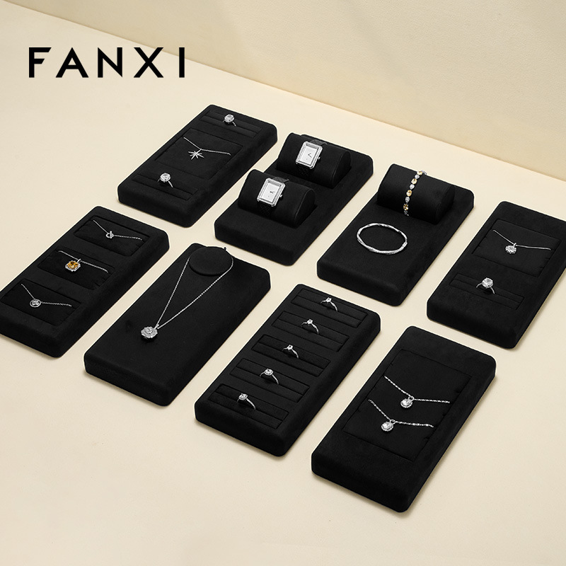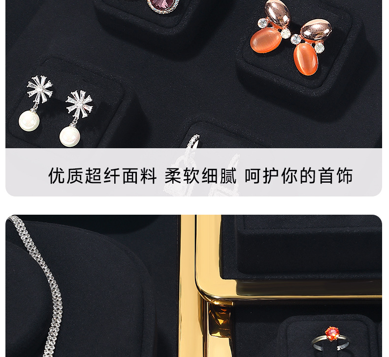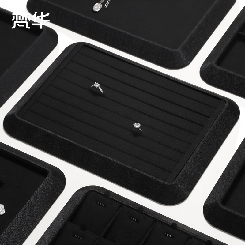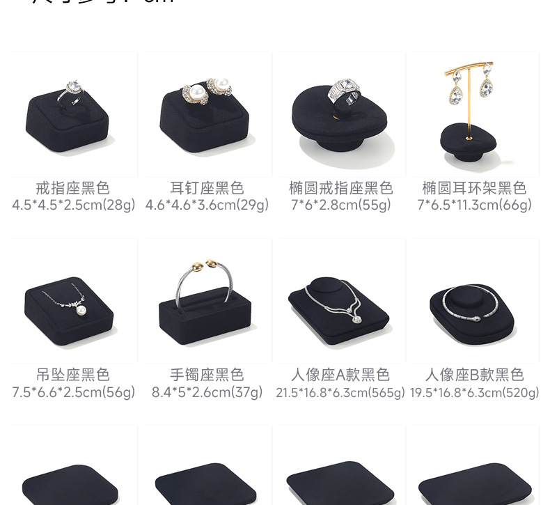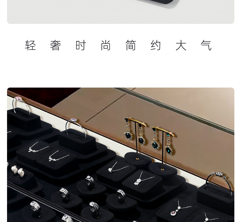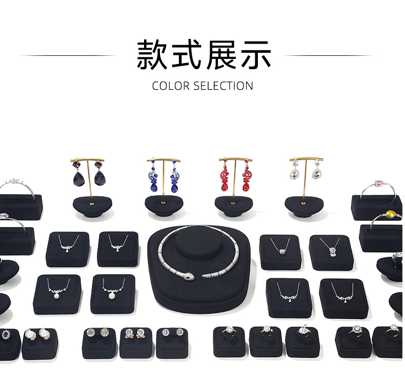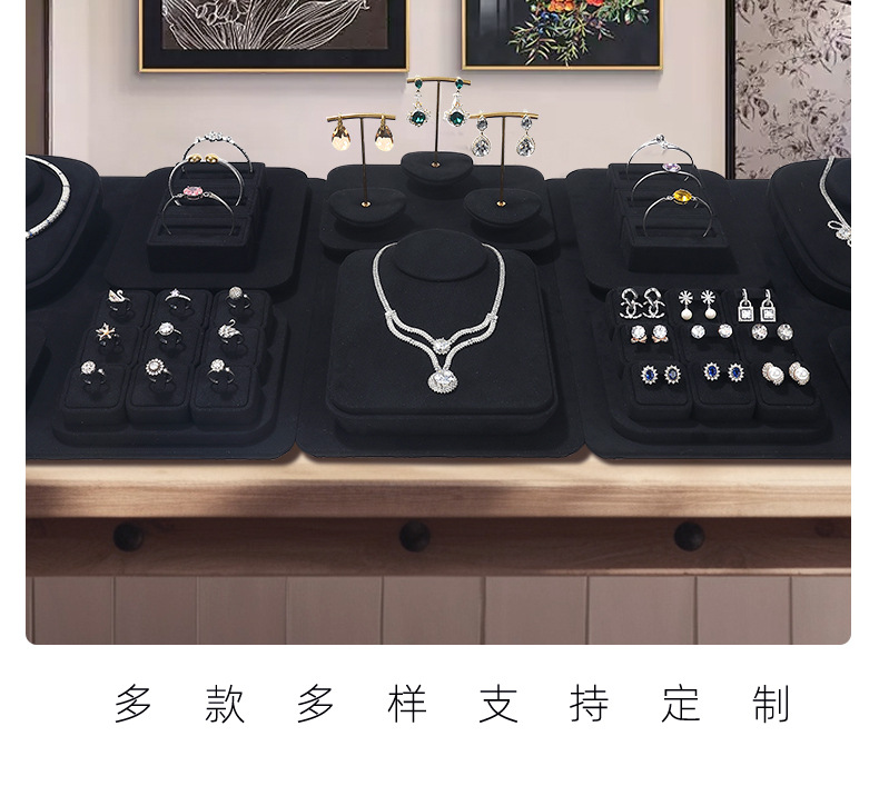 工厂直供高档珠宝展示道具戒指项链耳环首饰黑色超纤陈列架托定制