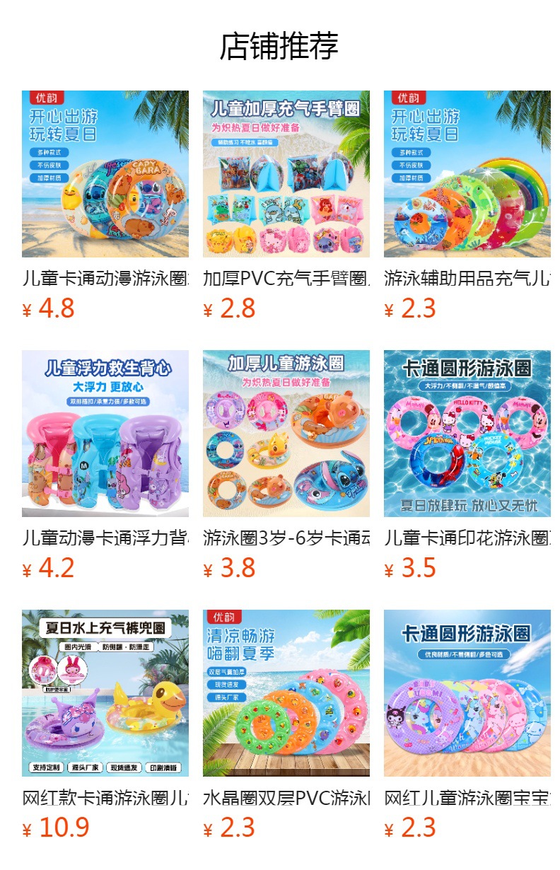 子供用水泳座輪クロスボーダー水上玩具赤ちゃん浮き輪卸売りアニメ救命輪空気入れ動物艇