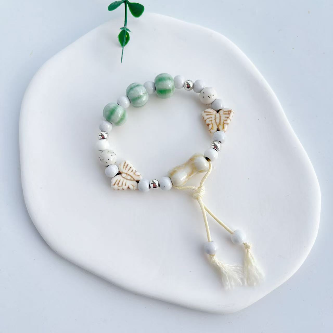 景徳鎮陶磁器ブレスレット双蝶カボチャ陶磁器ブレスレットアクセサリー学生シンプル小清新アクセサリー陶磁器ブレスレット