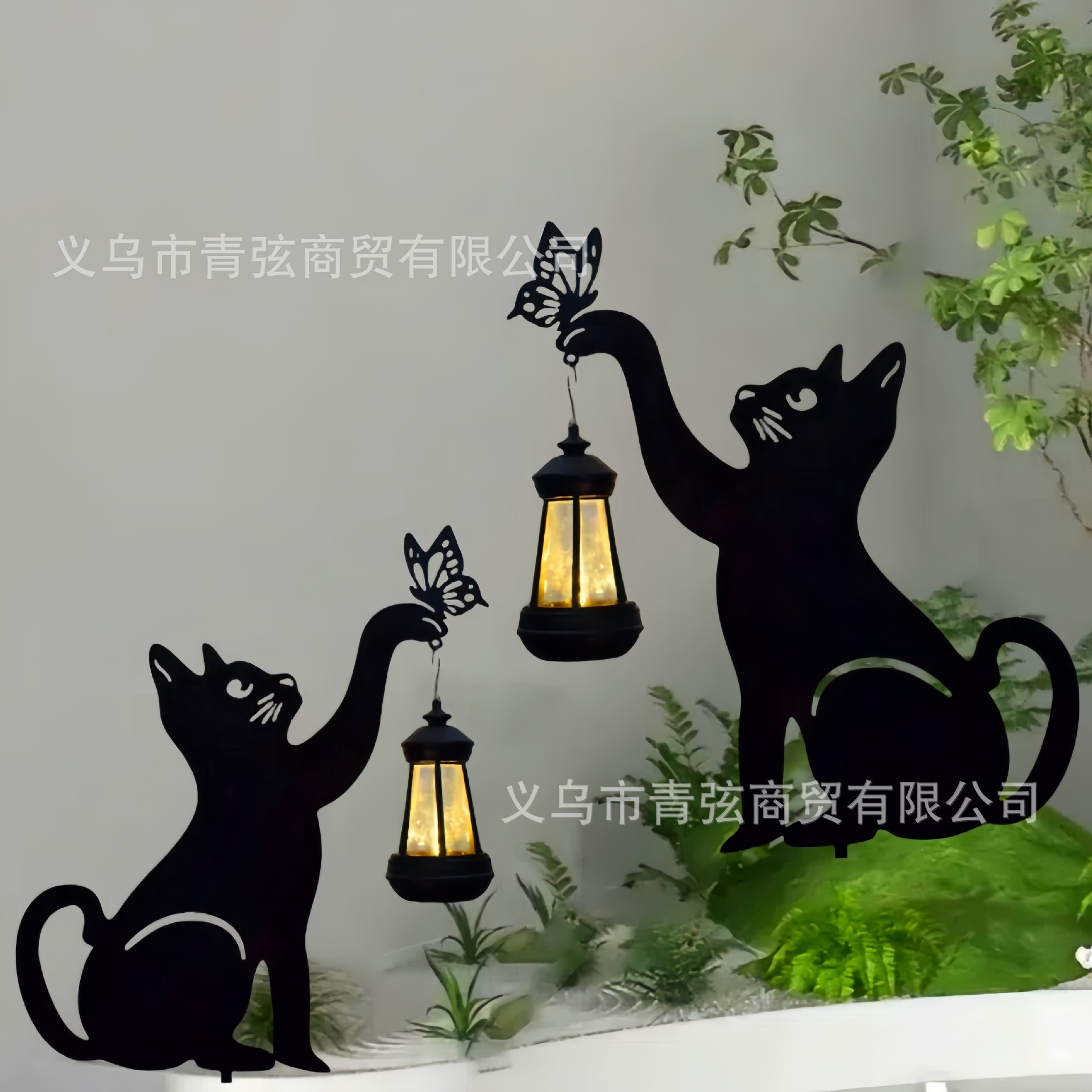 国境を越えた金属猫提灯屋外防水太陽灯芝生鉄芸プラグイン花園金属床挿し装飾