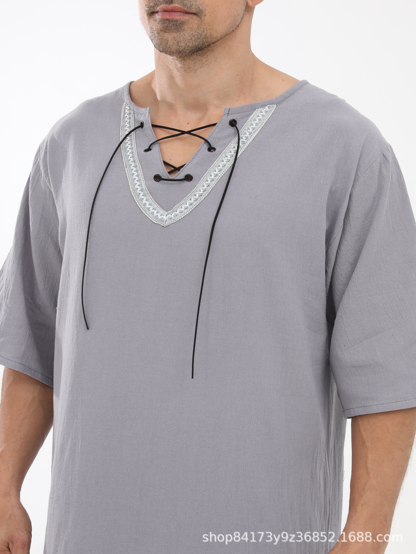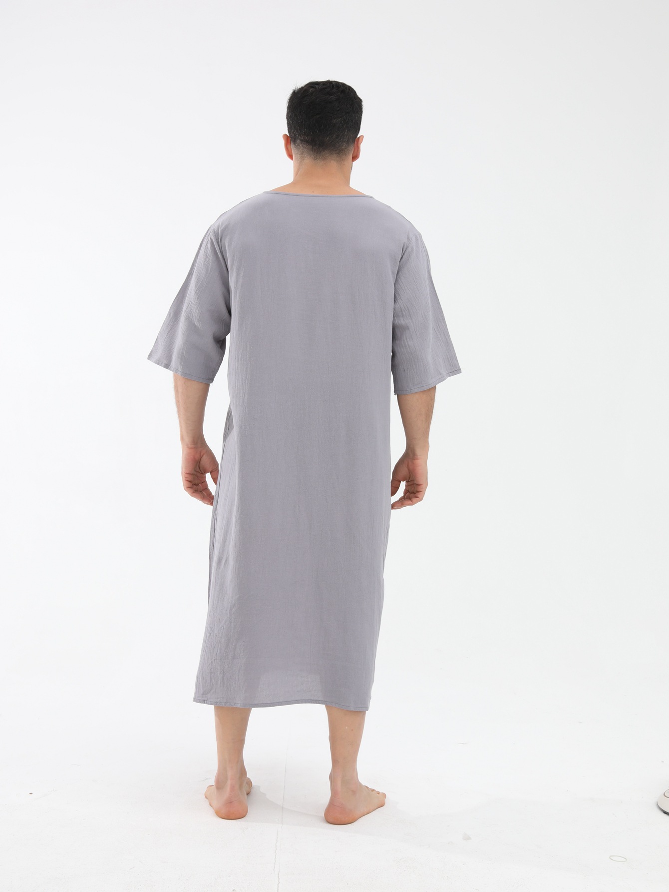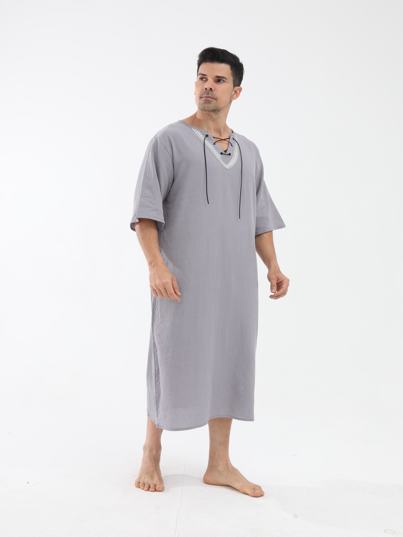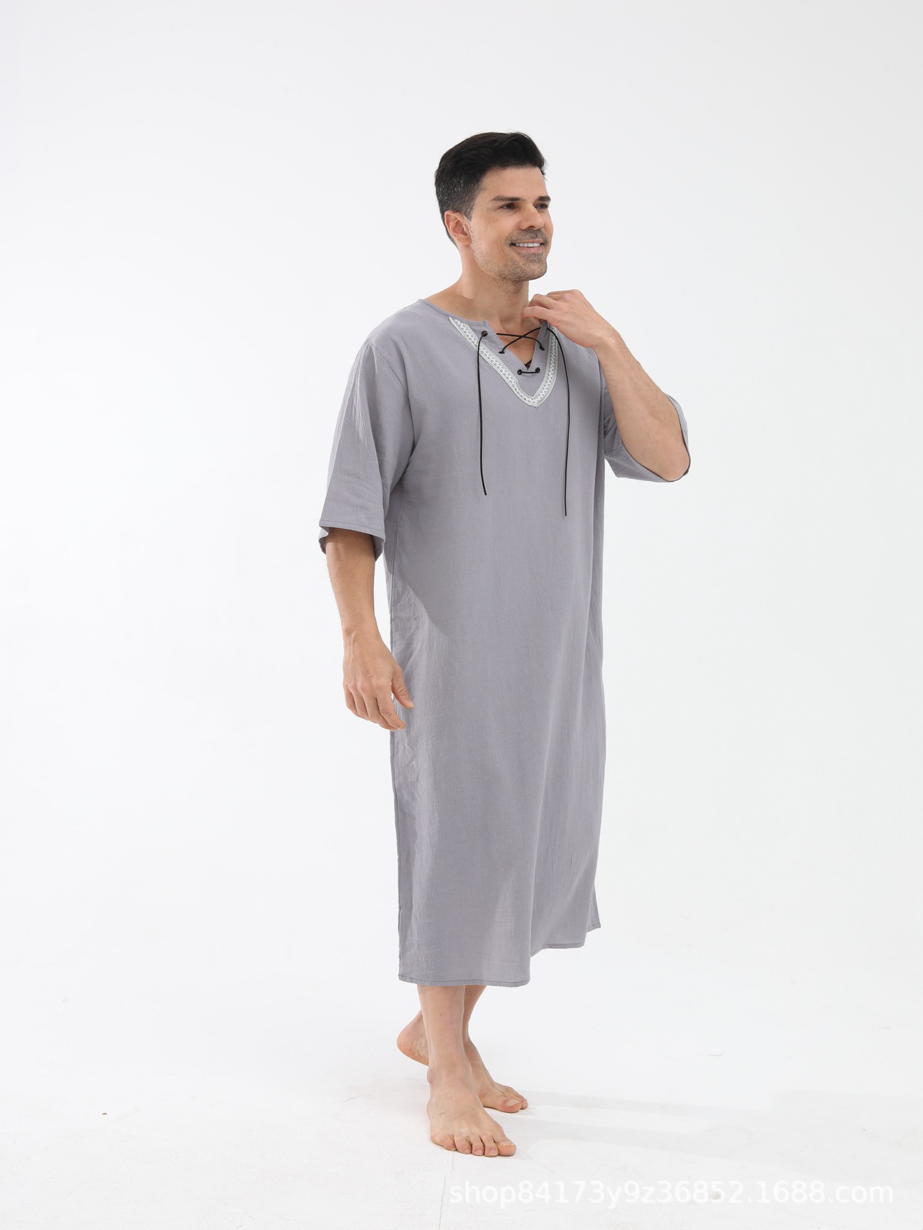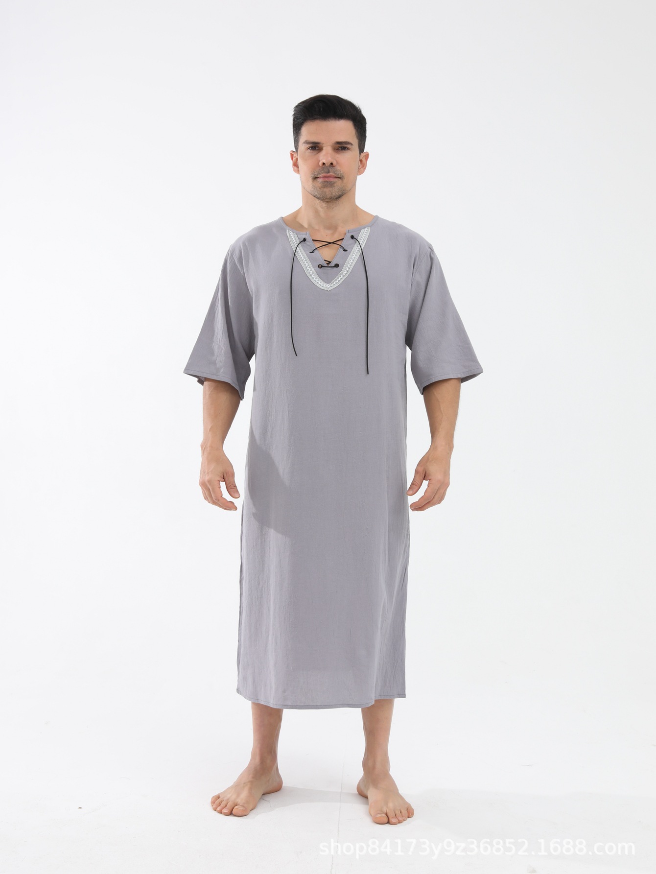 中東アラビアカフタン七分袖メンズイスラム教徒海賊スタイルコットンリネンローブ