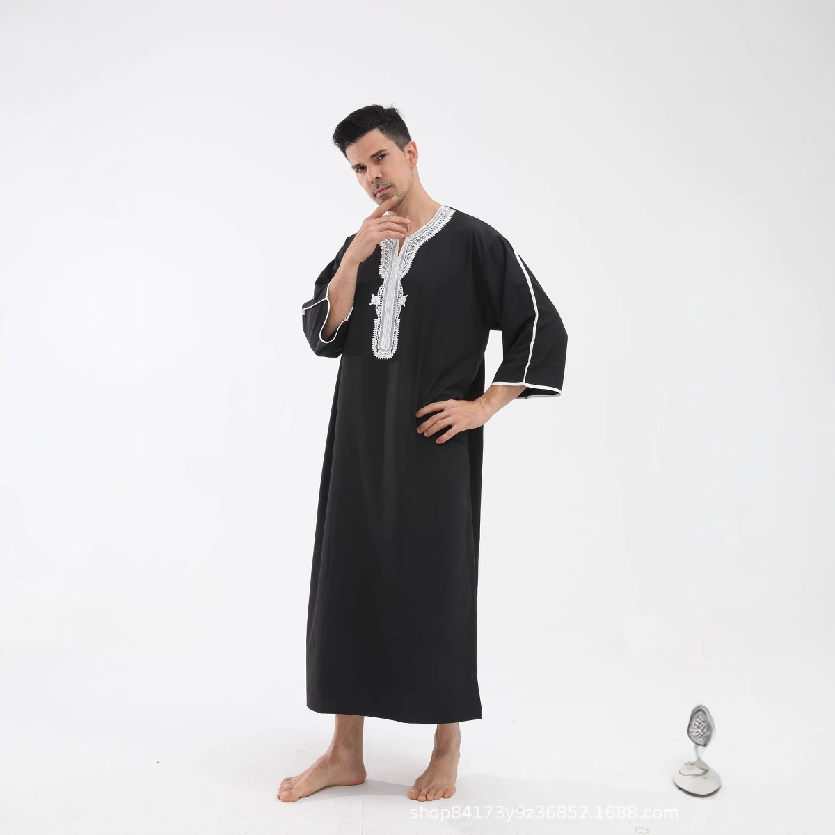 アラビア男性の七分袖カジュアルロングネックカラーイスラム教徒男性ローブ中東カジュアルローブ